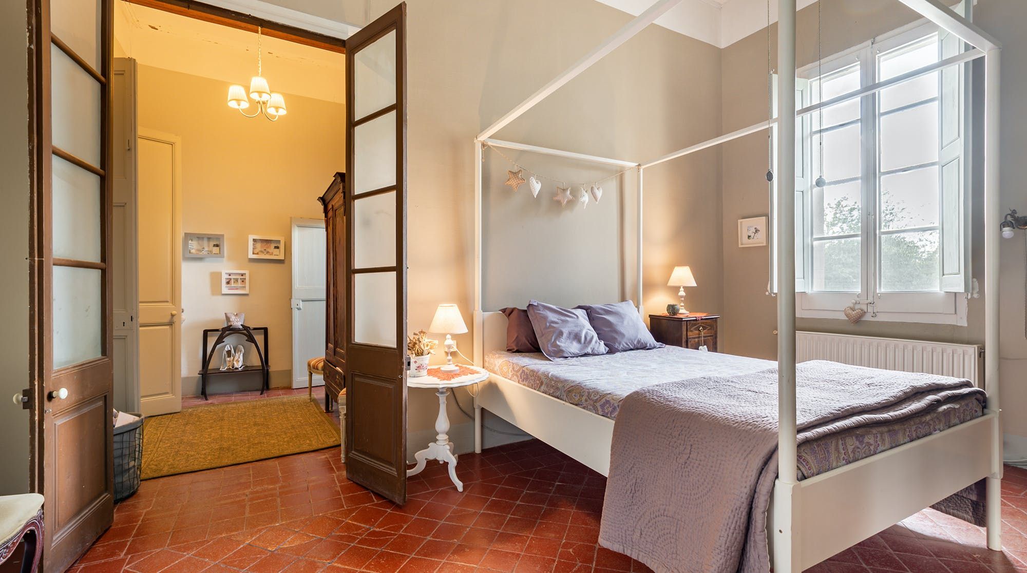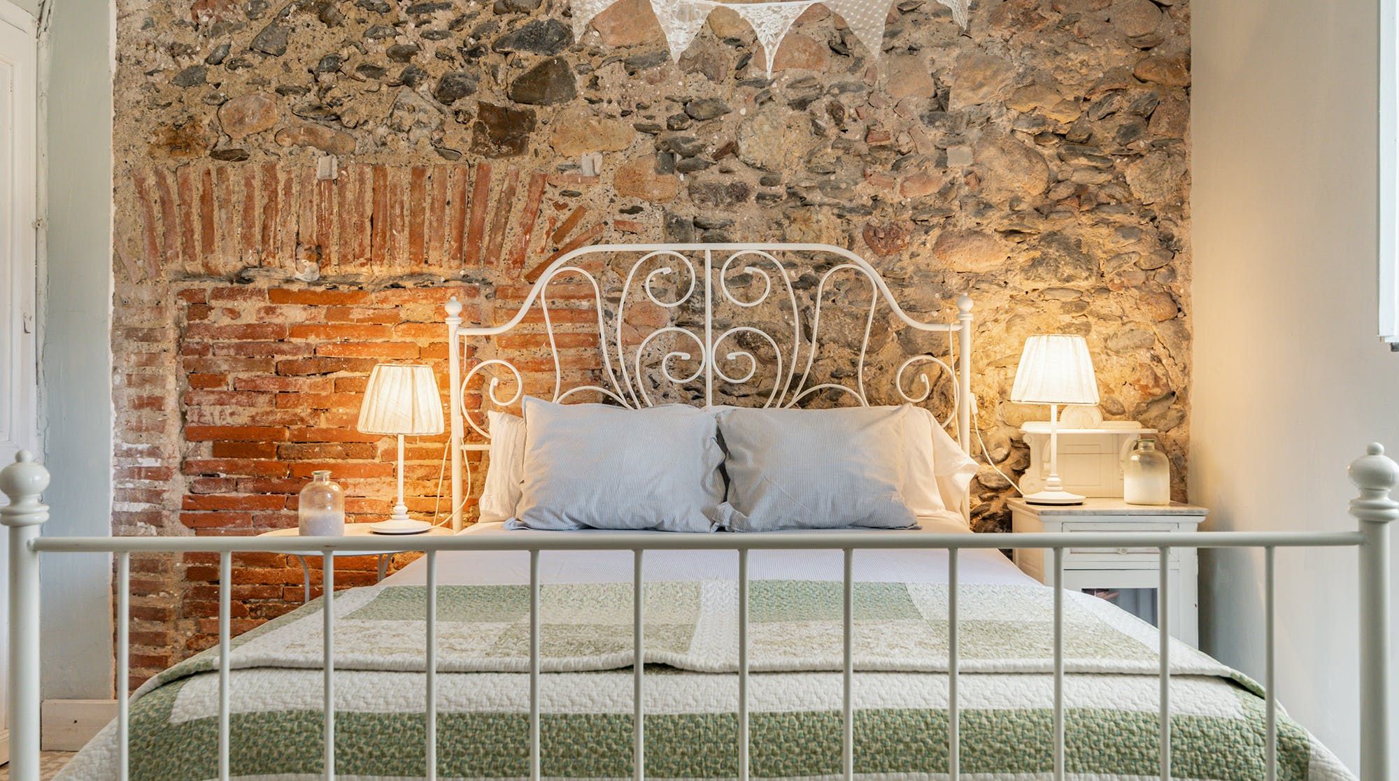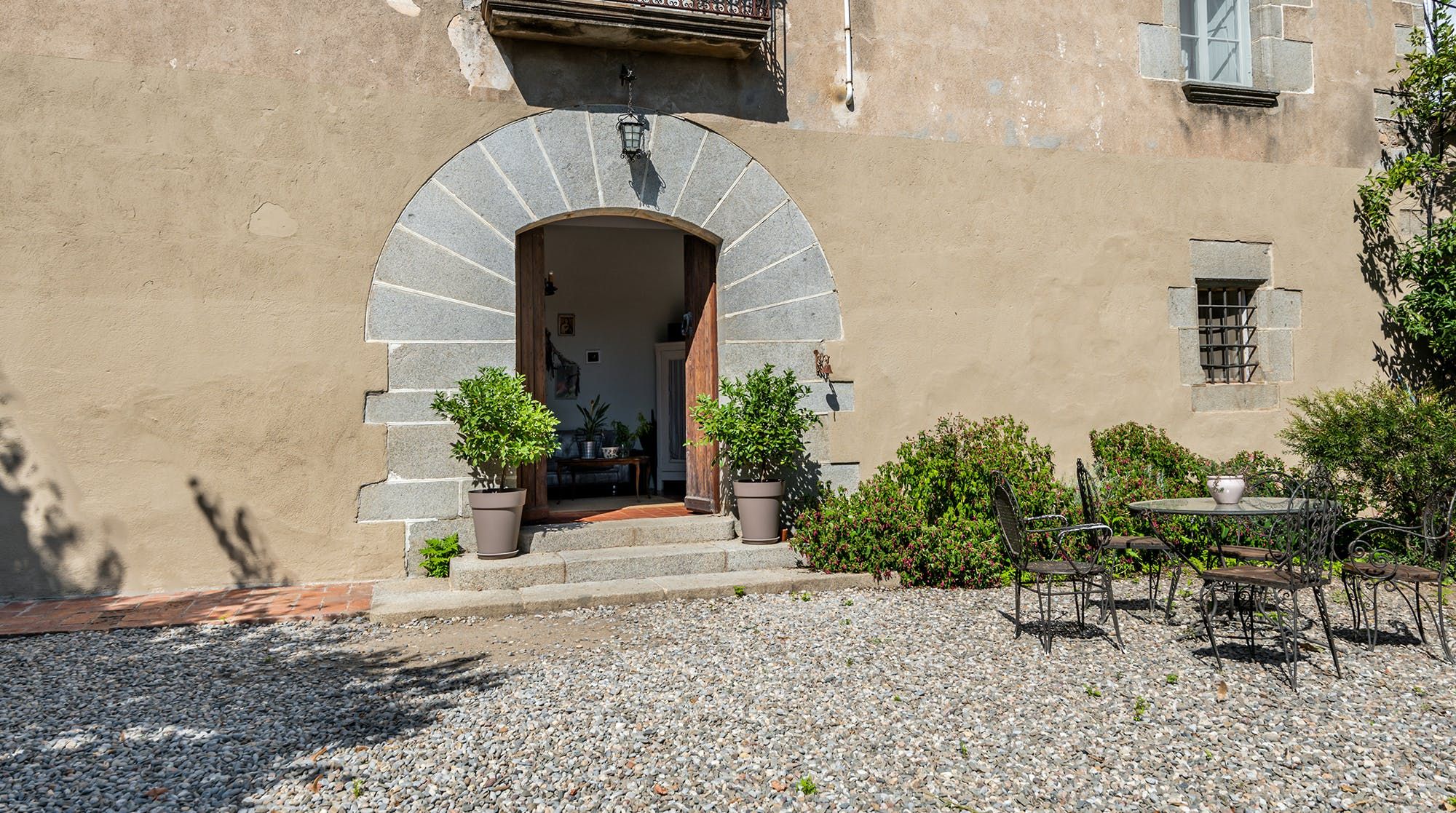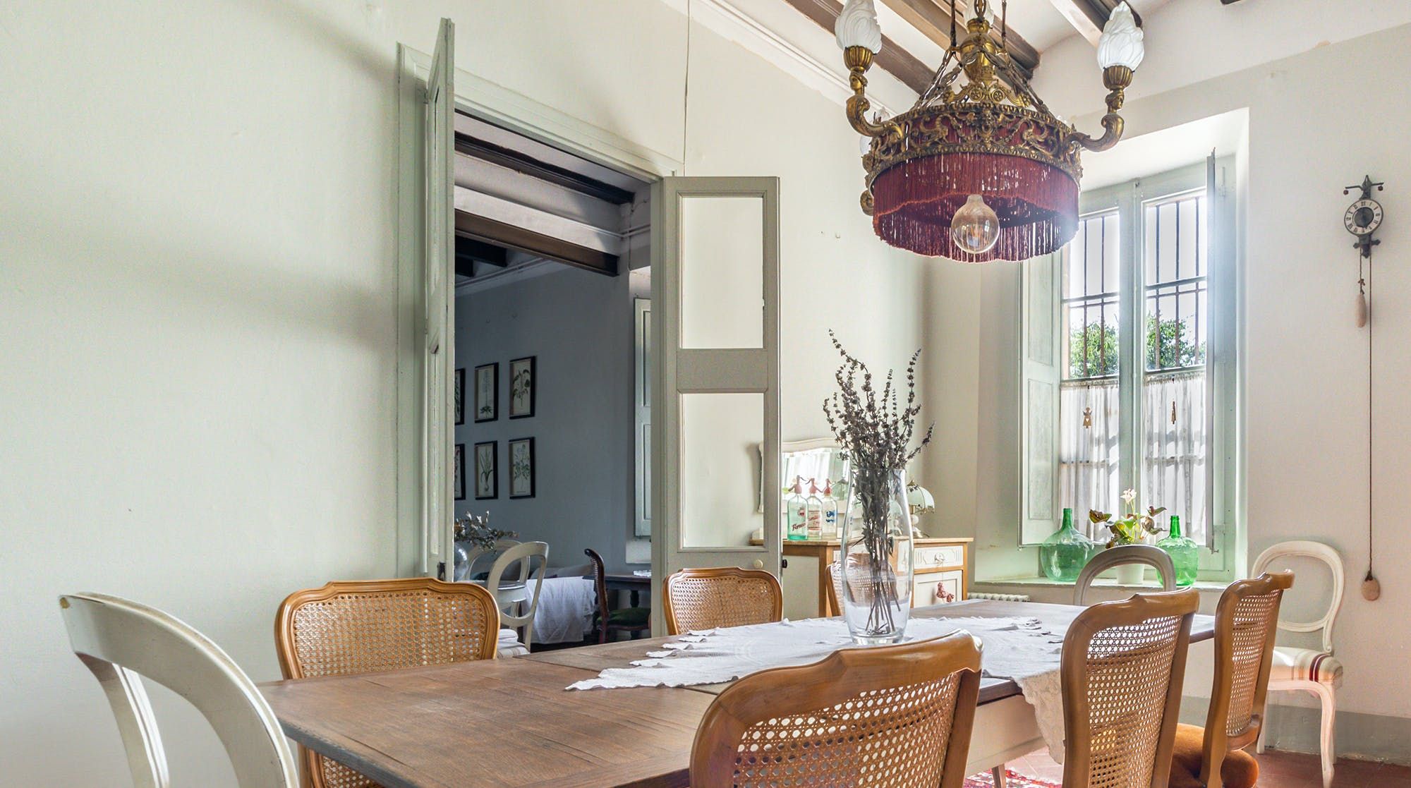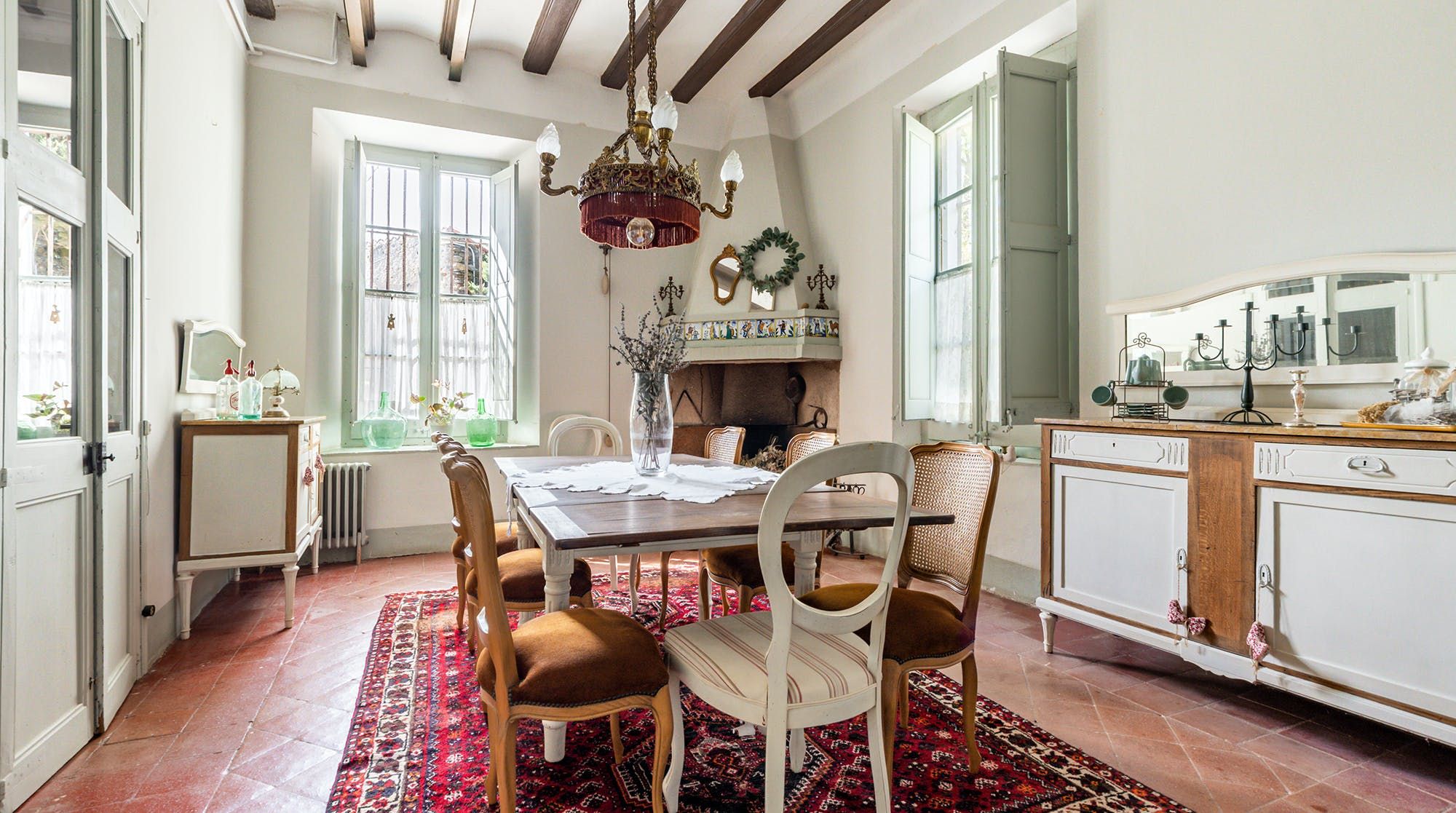 Inside, it’s everything you expect from a Spanish manor – terracotta tiled floors, wood-beamed ceilings and exposed brick walls. Several different sitting rooms packed with bookshelves and artworks provide the space to unwind and there are some laptop-friendly desks should you need to work remotely. We loved the tiled staircase at the centre of the home, a nod to yesteryear.