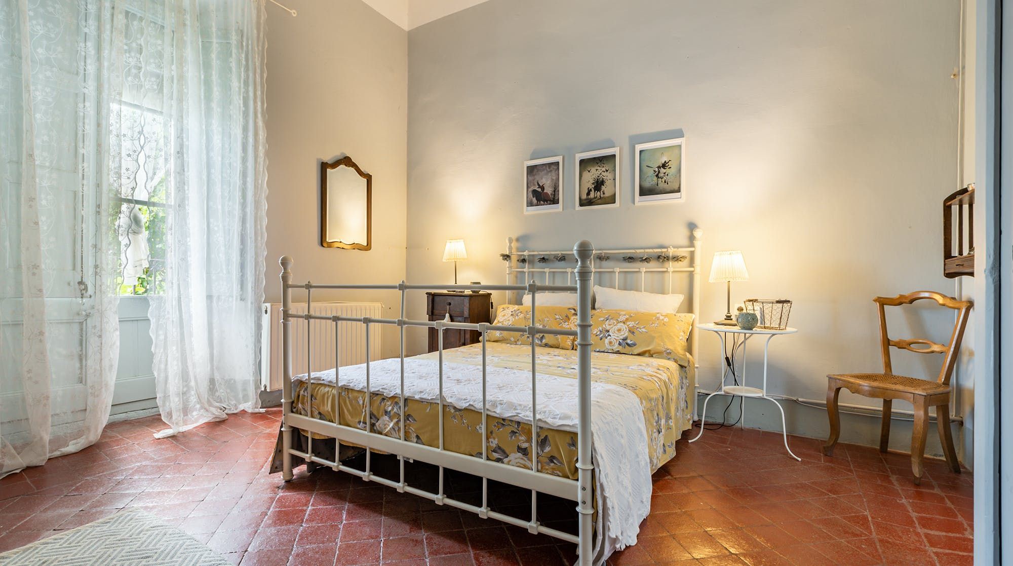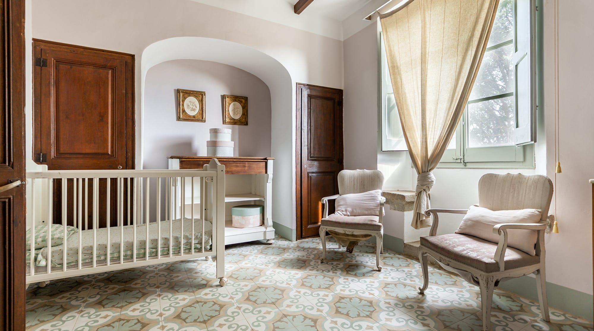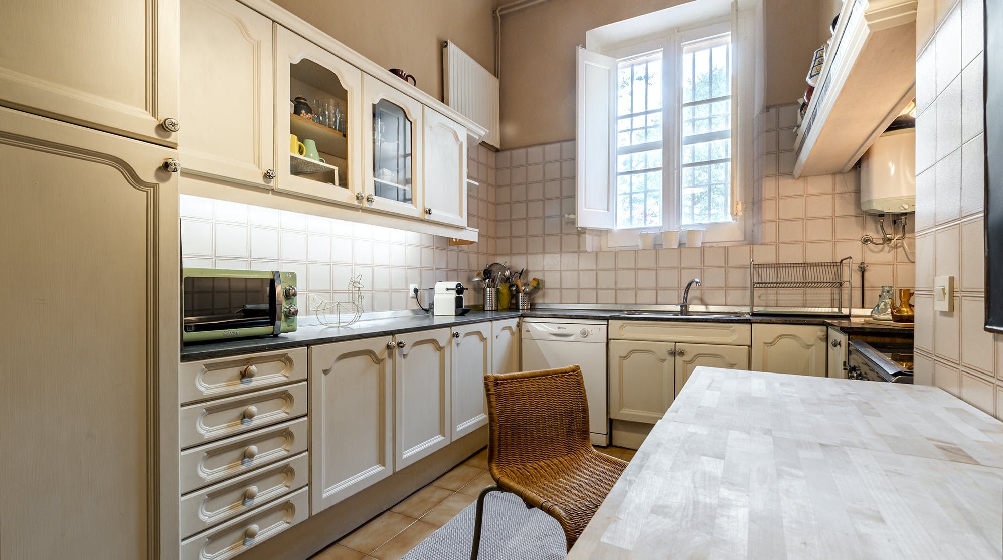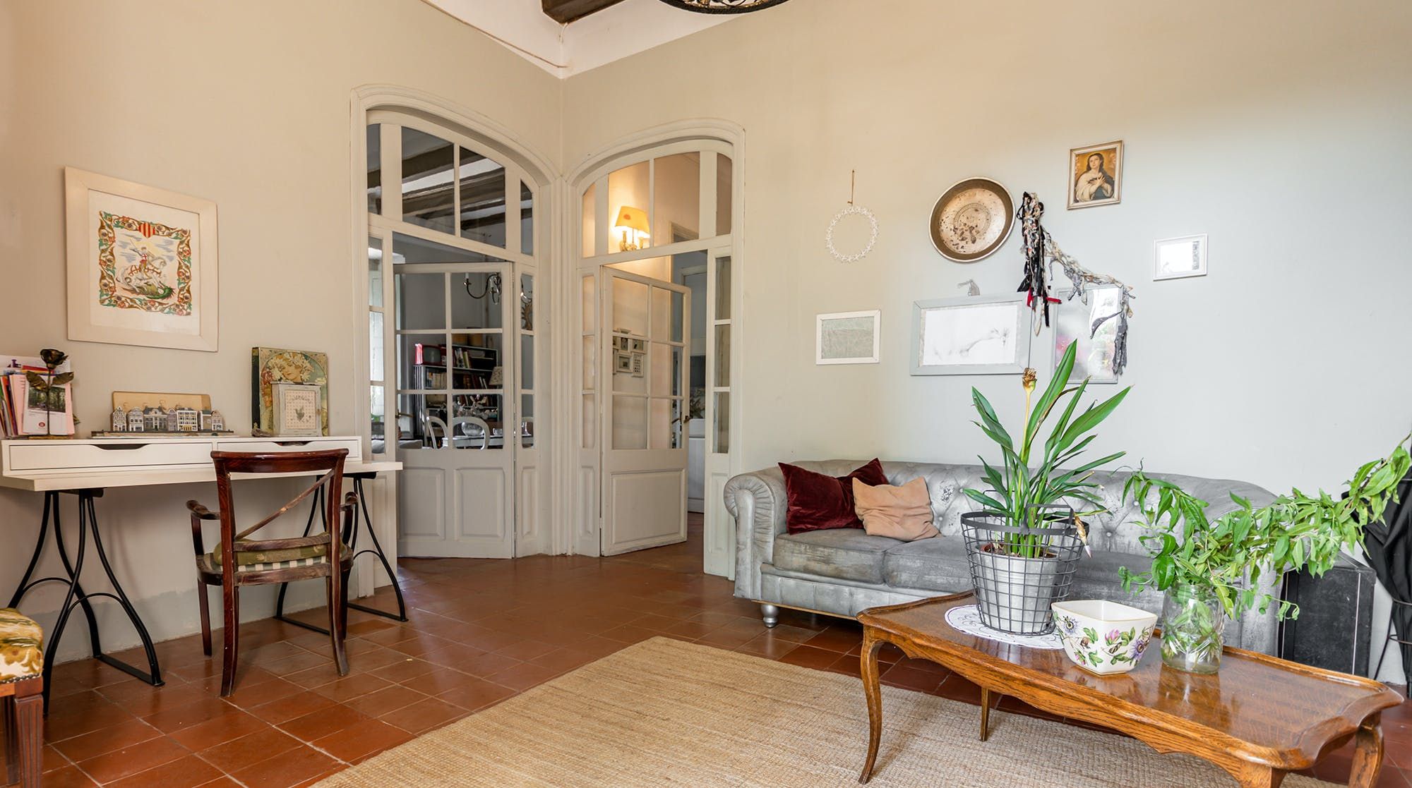 Inside, it’s everything you expect from a Spanish manor – terracotta tiled floors, wood-beamed ceilings and exposed brick walls. Several different sitting rooms packed with bookshelves and artworks provide the space to unwind and there are some laptop-friendly desks should you need to work remotely. We loved the tiled staircase at the centre of the home, a nod to yesteryear.