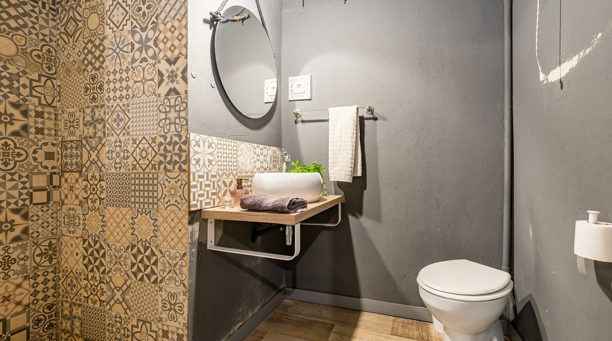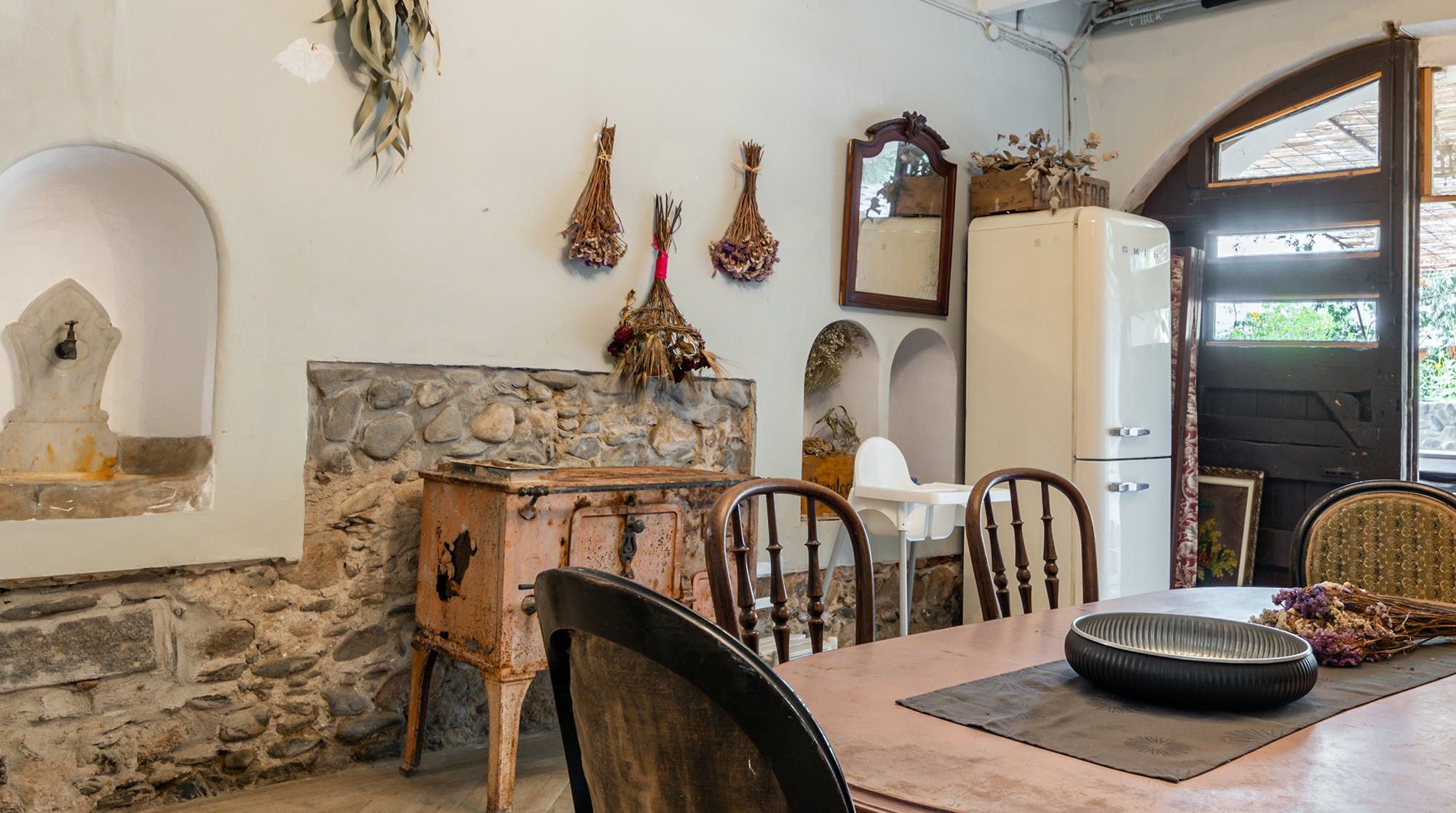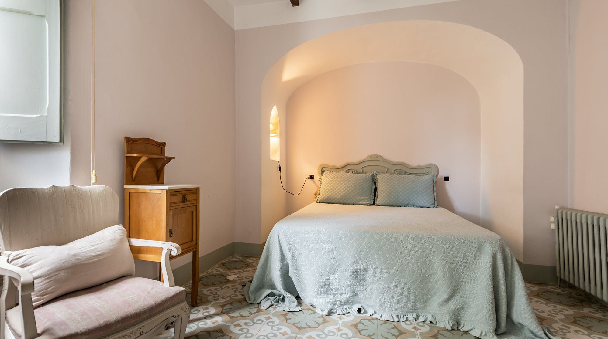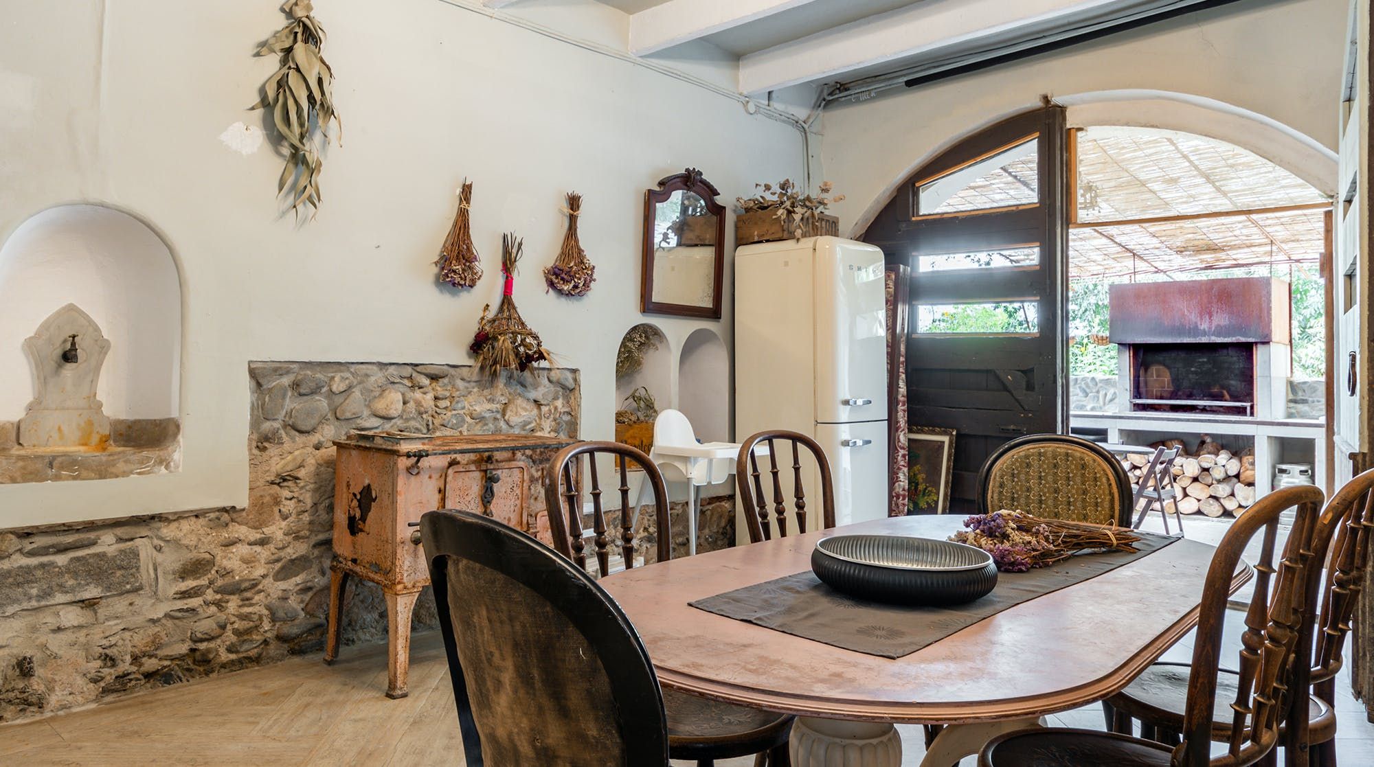 Inside, it’s everything you expect from a Spanish manor – terracotta tiled floors, wood-beamed ceilings and exposed brick walls. Several different sitting rooms packed with bookshelves and artworks provide the space to unwind and there are some laptop-friendly desks should you need to work remotely. We loved the tiled staircase at the centre of the home, a nod to yesteryear.