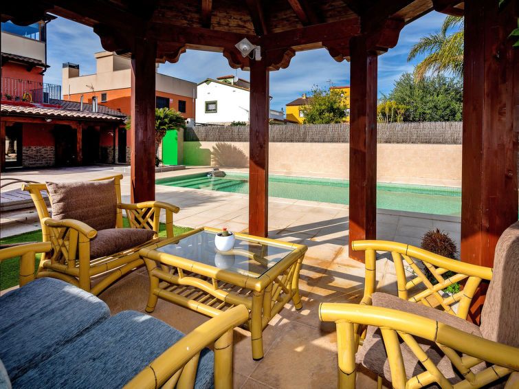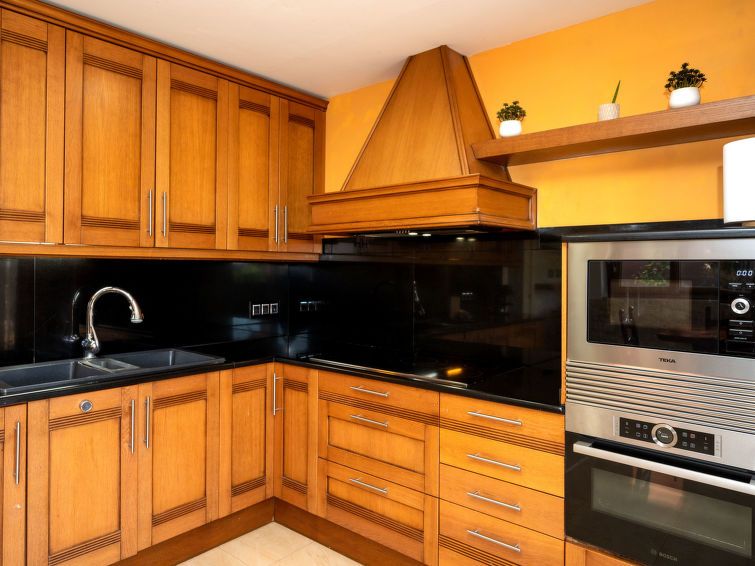"Masia Blanca", 4-room house 253 m2 on 3 levels. Spacious, comfortable and modern furnishings: living room with digital TV. Exit to the garden. Kitchen (oven, dishwasher, 5 ceramic glass hob hotplates, microwave, electric coffee machine) with dining table. Exit to the garden. No heating option.