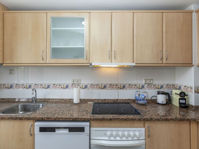 "Ronda Creixell", 3-room apartment 54 m2 on 1st floor. Object suitable for 2 adults + 2 children. Practical and cosy furnishings: living/dining room with digital TV. 1 room with 1 french bed (140 cm, length 190 cm). 1 room with 2 beds (80 cm, length 190 cm). Kitchen (oven, dishwasher, toaster, kettle, microwave, electric coffee machine).