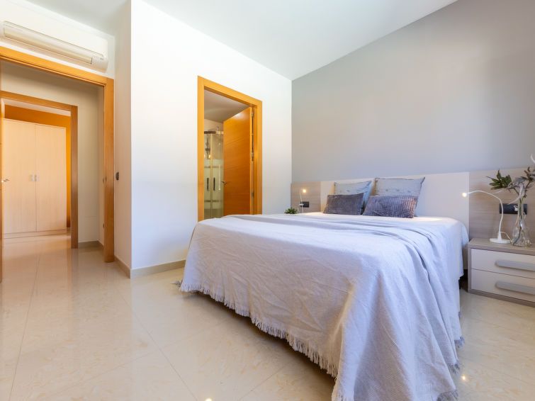 "Grobro 1", 4-room house 98 m2, lower ground floor. Spacious and bright, modern and cosy furnishings: living/dining room with dining table, digital TV, air conditioning and forced-air heating. Exit to the terrace, to the swimming pool. 1 double bedroom with 1 french bed (135 cm, length 190 cm), shower/WC.