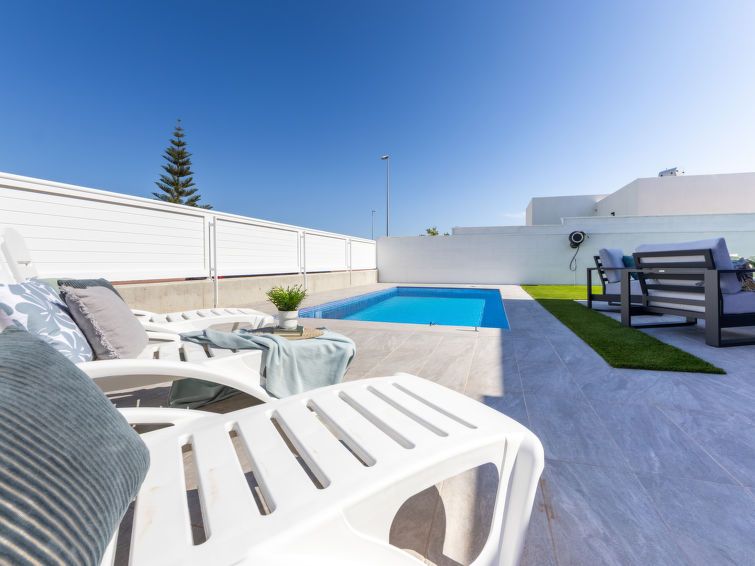 Spacious, new, bright, and super comfortable house. Well located. Quiet. Perfect garden with pool. We loved this house.