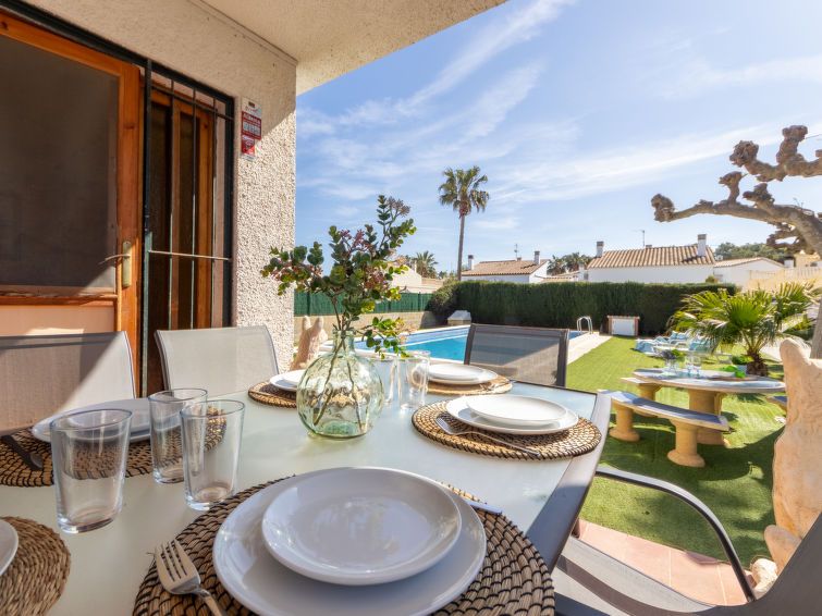"Mari Paz", 4-room house 100 m2, on the ground floor. Comfortable and cosy furnishings: living/dining room with dining table, digital TV and international TV channels. Exit to the patio. 1 double bedroom with 1 french bed (135 cm, length 190 cm). 2 double bedrooms, each room with 2 beds (90 cm, length 190 cm).