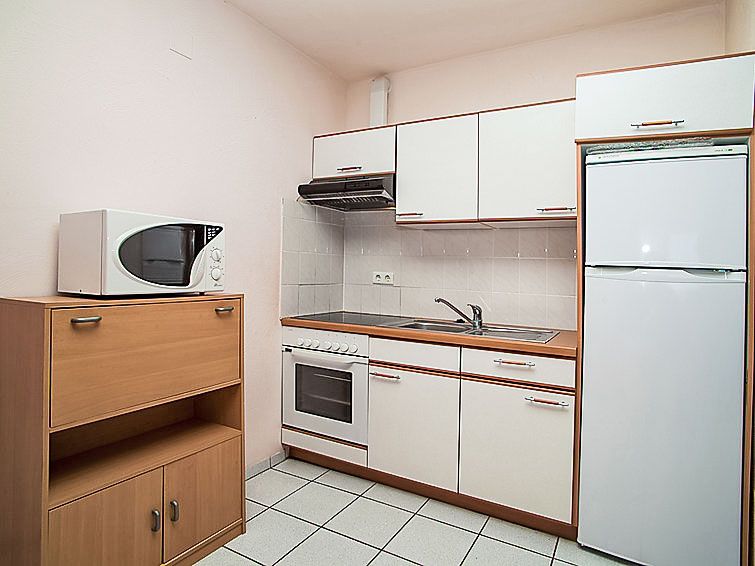 1-room studio 37 m2, on the ground floor. Practical and comfortable furnishings: living/dining room with 1 french bed, 1 sleeping facility, satellite TV and air conditioning. Exit to the terrace. Exit to the terrace. Kitchenette (oven, X ceramic glass hob hotplates, microwave, electric coffee machine).