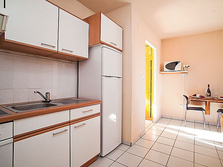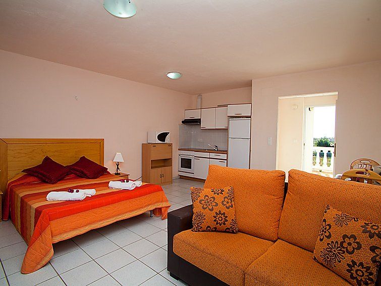 1-room studio 45 m2, on the upper floor. Practical and comfortable furnishings: living/dining room with 1 french bed, 1 sleeping facility, satellite TV and air conditioning. Exit to the terrace. Exit to the terrace. Kitchenette (oven, X ceramic glass hob hotplates, microwave, electric coffee machine).