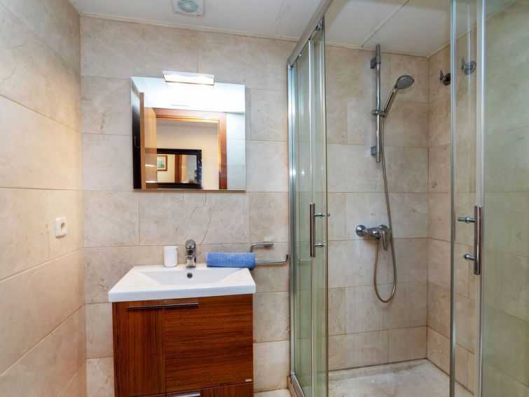 "La Fonollera", 4-room apartment 62 m2 on 1st floor, north facing position. Comfortable and cosy furnishings: living/dining room with TV (flat screen), boiler (95 litres). Exit to the balcony, to the terrace. 1 room with 1 french bed (1 x 160 cm, length 200 cm), shower/bidet/WC. 1 room with 1 pull-out bed (2 x 80 cm, length 190 cm).