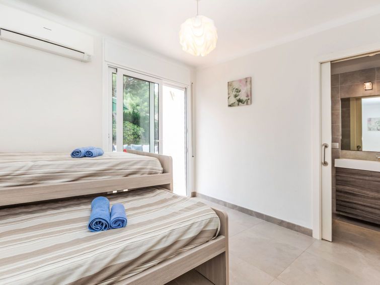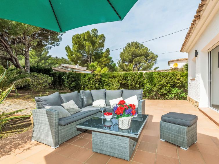 "Mon Coeur", 3-room house 74 m2. Spacious and bright, beautiful and cosy furnishings: living/dining room with dining table, TV and digital TV (flat screen). Exit to the terrace. 1 room with 1 french bed (1 x 150 cm, length 190 cm), air conditioning and forced-air heating. 1 room with 1 pull-out bed (2 pers.