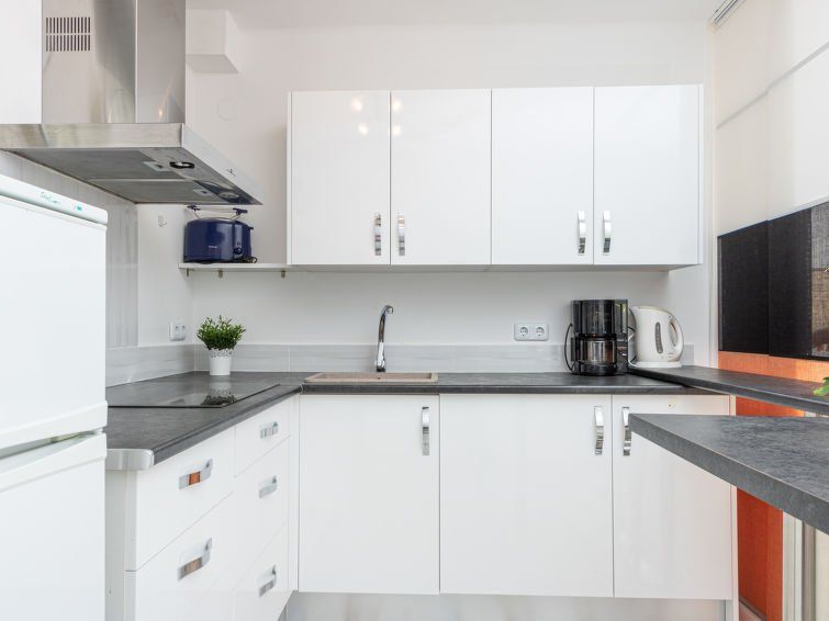 2-room apartment 50 m2. Renovated, practical and comfortable furnishings: living/dining room with satellite TV and digital TV (flat screen), air conditioning and forced-air heating. Exit to the balcony, west facing position and south facing position. 1 open room with 1 double bed (140 cm, length 190 cm).