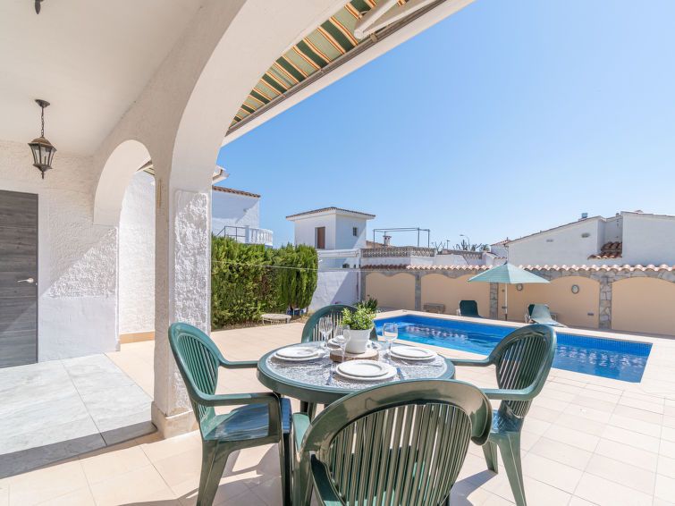 3-room house 60 m2. Bright, comfortable and beautiful furnishings: living/dining room with dining table and satellite TV (flat screen). Exit to the patio, to the swimming pool. 1 room with 1 french bed (140 cm, length 190 cm). 1 room with 2 beds (90 cm, length 190 cm). Open kitchen (4 gas rings, toaster, kettle, microwave, freezer, electric coffee machine).