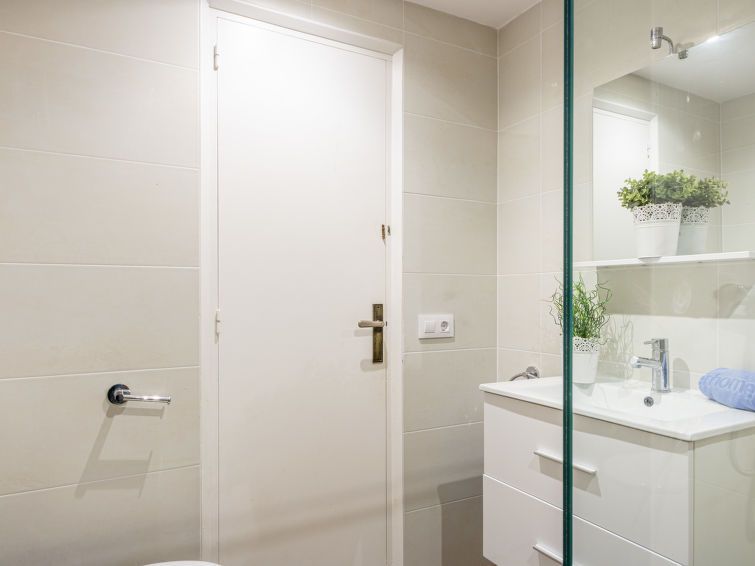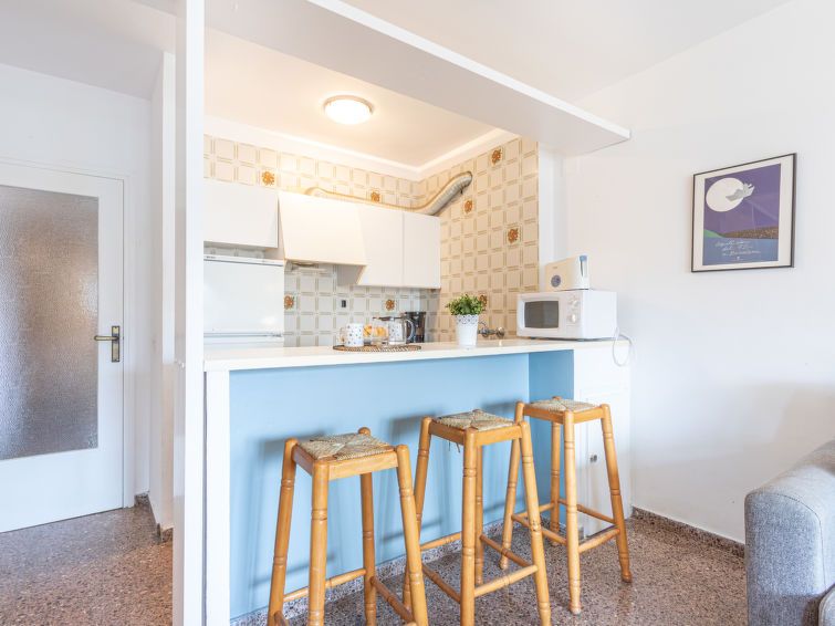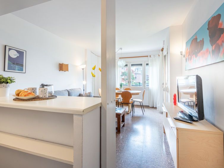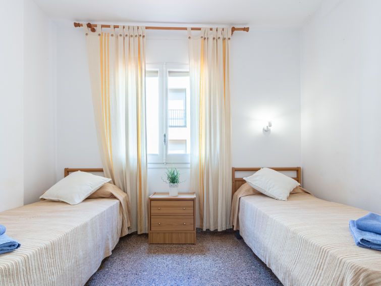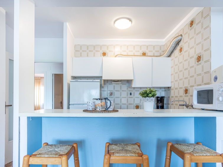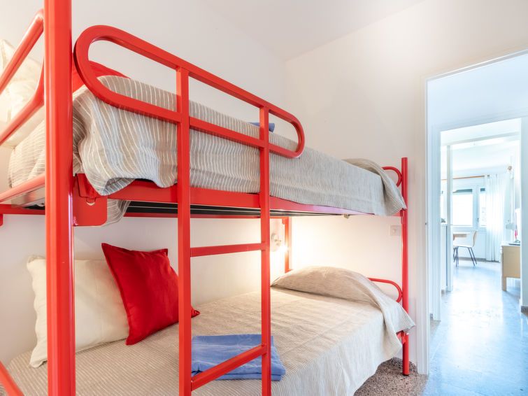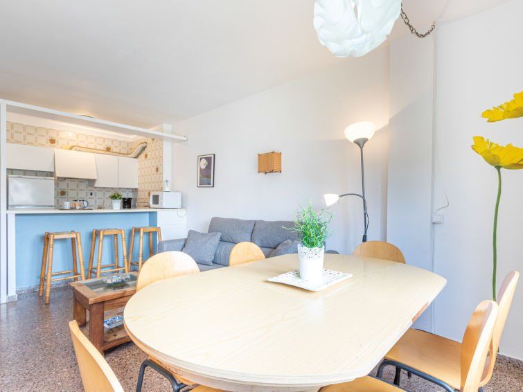 4-room apartment 49 m2 on 1st floor. Simple and comfortable furnishings: living/dining room with 1 sofabed, digital TV and flat screen. Exit to the balcony. 1 room with 1 french bed (135 cm). 1 room with 2 beds (90 cm). 1 small room with 1 x 2 bunk beds (90 cm, length 190 cm). Open kitchen (4 hot plates, oven, microwave, freezer, electric coffee machine) with bar.