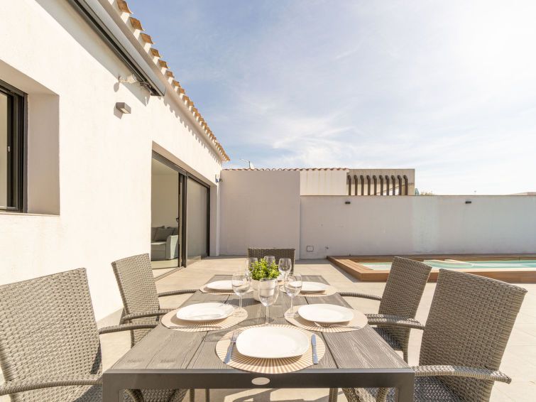3-room house 107 m2, south facing position. Spacious and bright, fully renovated, practical and modern furnishings: living/dining room with 1 double sofabed (180 cm, length 200 cm), dining table, digital TV, flat screen, air conditioning, forced-air heating and electric shutters. Exit to the terrace, to the swimming pool, south facing position.