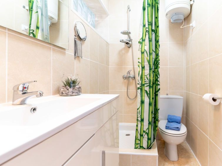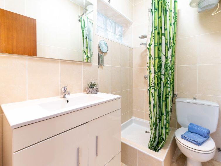 We arrived at an apartment with a beautiful terrace offering the most stunning view. A charming courtyard leads to the pool, which feels like a private pool. The apartment itself was clean and equipped with every comfort. The only downside was that the kitchen was quite small. We bought a wooden cutting board to use as a work surface on the stove.