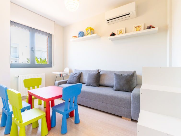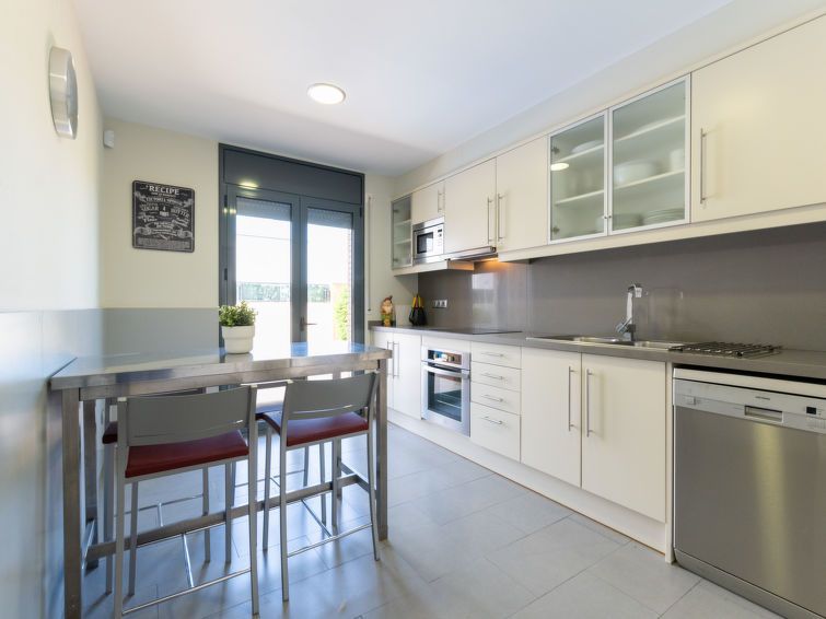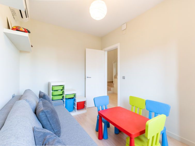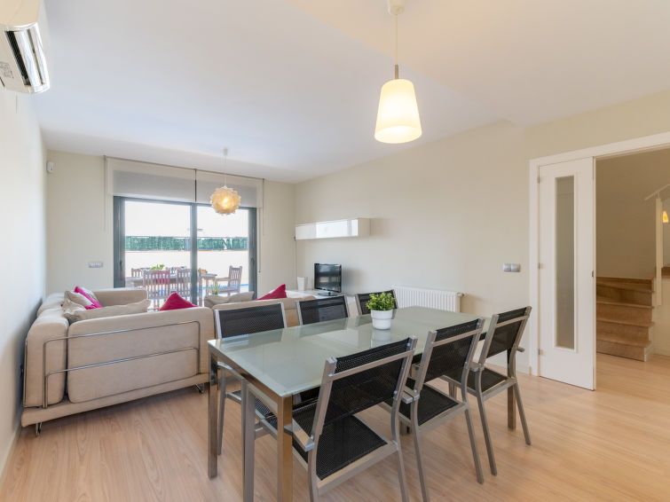 5-room semi-detached house 160 m2 on 2 levels. Modern furnishings: living/dining room with digital TV, flat screen, DVD, air conditioning and forced-air heating. Exit to the terrace, to the swimming pool. 1 room with 1 double sofabed (140 cm, length 200 cm). Kitchen (oven, dishwasher, 3 ceramic glass hob hotplates, toaster, microwave, freezer).