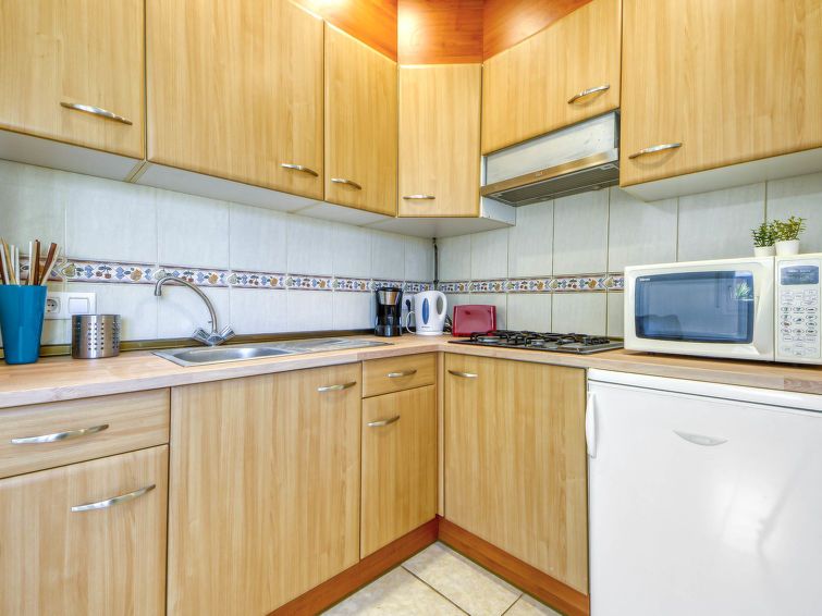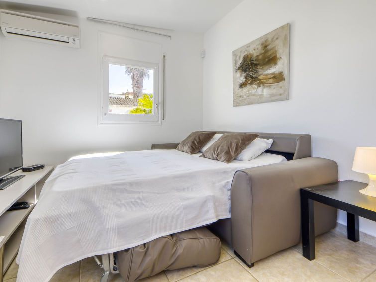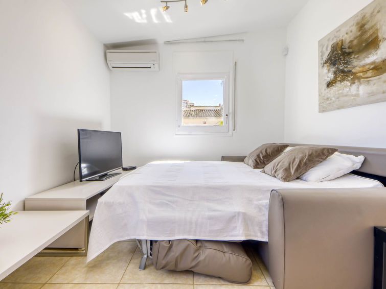 1-room studio 21 m2 on 1st floor. Simple furnishings: Studio with 1 double sofabed (140 cm, length 190 cm), dining table, kitchen corner, satellite TV, air conditioning and forced-air heating. Kitchenette (4 gas rings, toaster, kettle, microwave, electric coffee machine). Shower/WC.