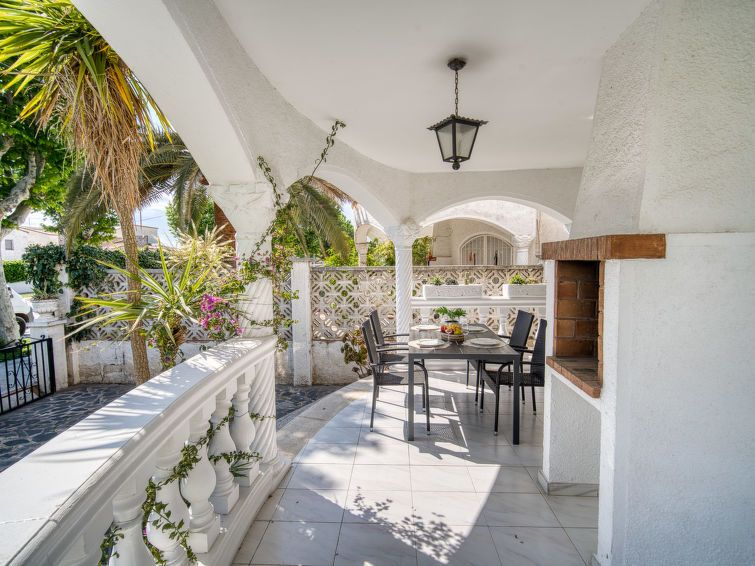 "Paquita", 4-room house 95 m2 on 2 levels, south-west facing position. Spacious, practical and rustic furnishings: living/dining room with open-hearth fireplace (only for decoration), dining table and satellite TV (flat screen). Exit to the patio. 1 room with 1 french bed (160 cm, length 190 cm).