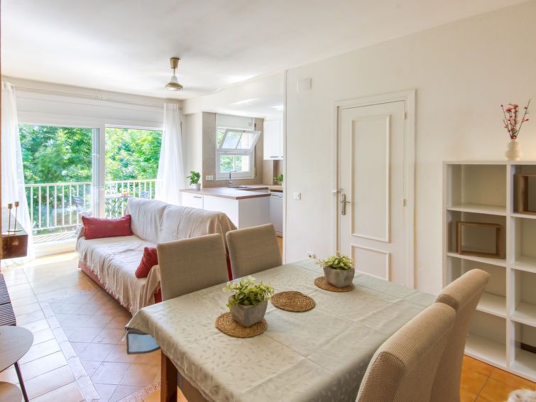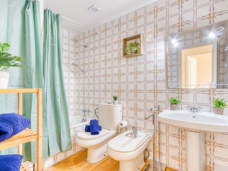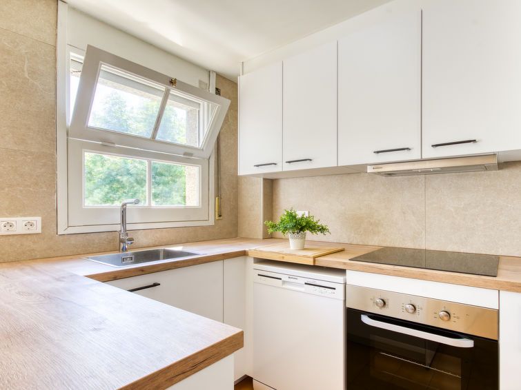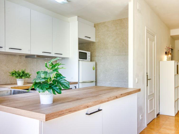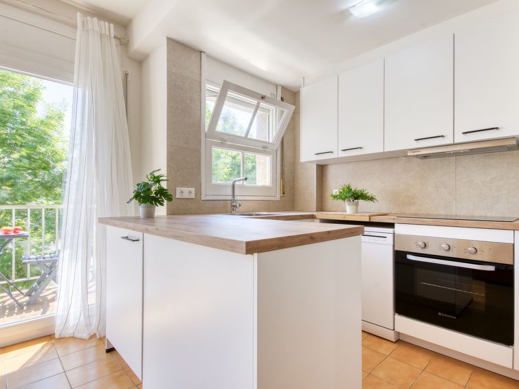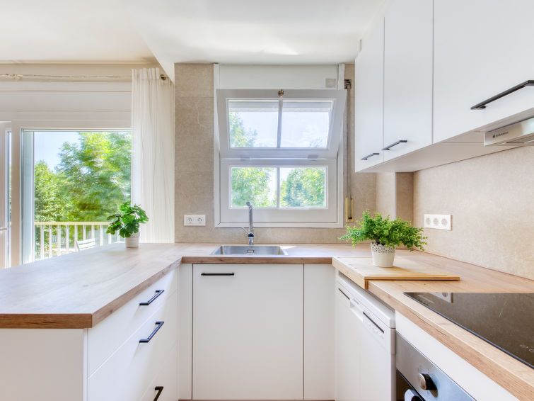3-room apartment 55 m2. Simple and comfortable furnishings: living/dining room with dining table and satellite TV. Exit to the balcony. 1 room with 1 french bed (140 cm, length 190 cm). 1 children's room with 2 beds (90 cm, length 190 cm). Open kitchen (oven, dishwasher, 4 ceramic glass hob hotplates, toaster, kettle, microwave).