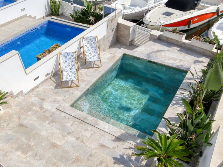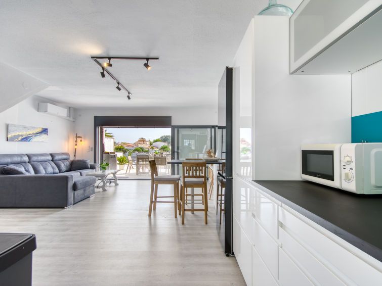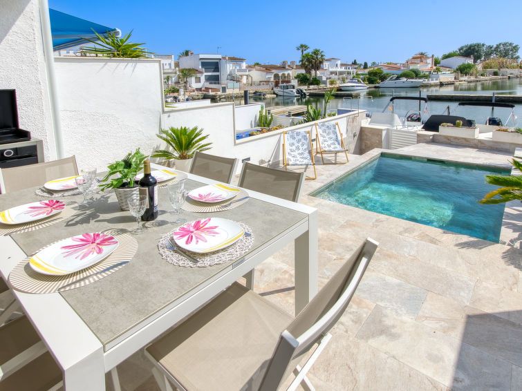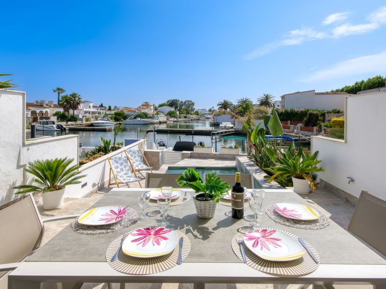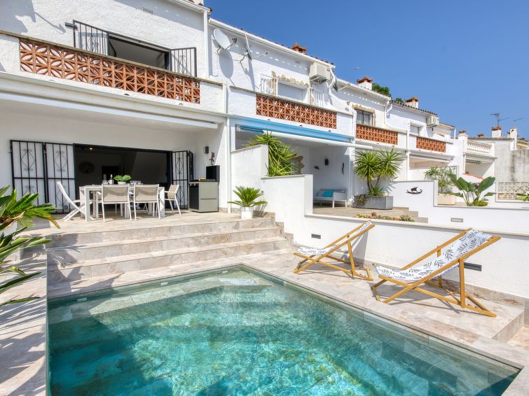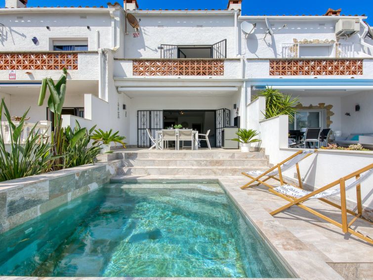 4-room terraced house 82 m2 on 2 levels. Object suitable for 4 adults + 4 children. Bright, partly renovated in 2025, comfortable and modern furnishings: living/dining room with dining table, satellite TV, air conditioning and forced-air heating. Exit to the terrace, to the swimming pool, south facing position and west facing position.