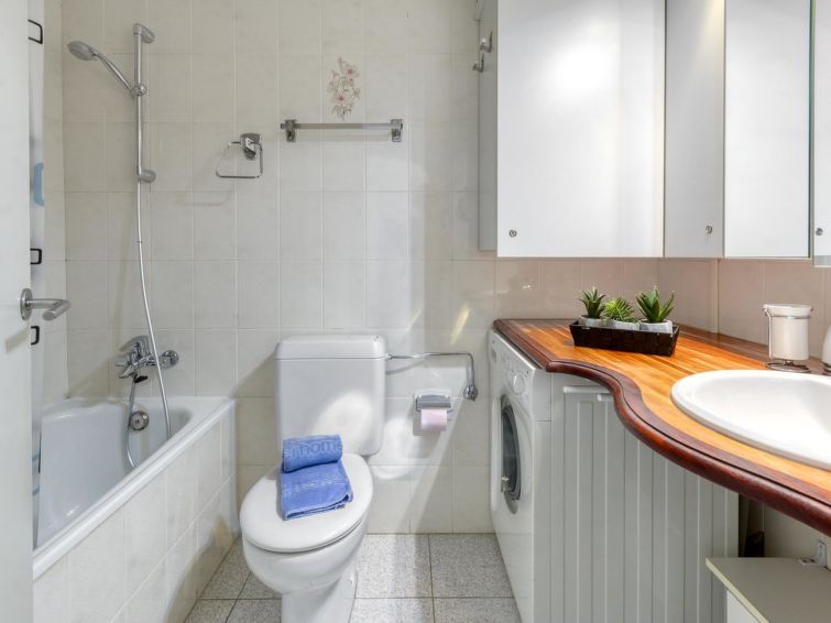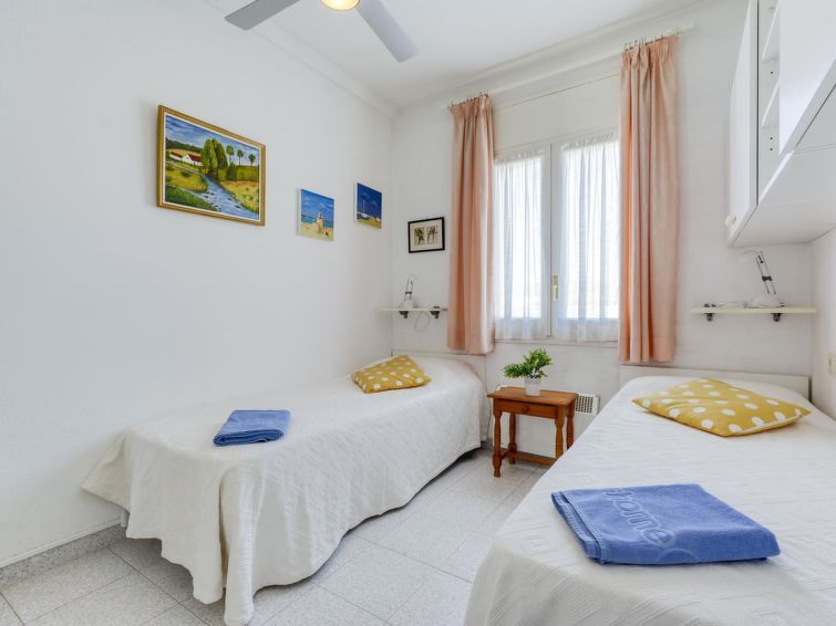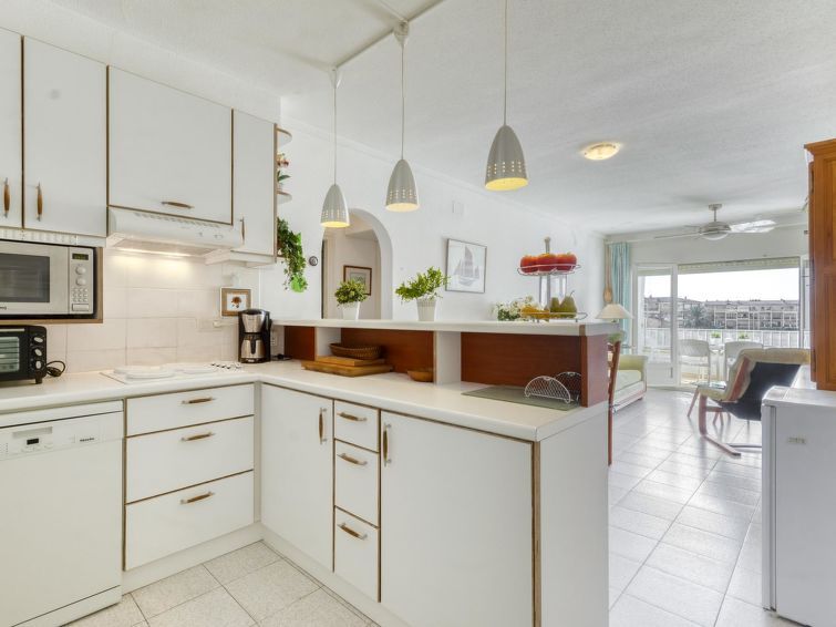 3-room apartment 50 m2 on 2nd floor. Practical and comfortable furnishings: living/dining room with dining table, satellite TV, flat screen and fan. Exit to the terrace. 1 room with 1 french bed (160 cm, length 200 cm), fan. 1 room with 2 beds (90 cm, length 190 cm), fan. Kitchen (oven, dishwasher, 3 ceramic glass hob hotplates, toaster, kettle, microwave, freezer, electric coffee machine).