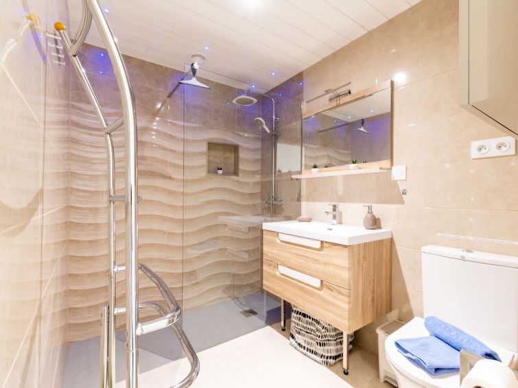 This cottage in Empuriabrava is highly recommended. I wouldn't put four adults in it; it's too small for that. The shower has little pressure, making showering a bit of a hassle. The location is great, right on the water and away from the crowds. We brought bikes, so it was ideal for going to the beach. There are lovely cycling routes nearby. Tip: Put a gate key on your key ring, this makes parking the bikes easier. Add the pool map