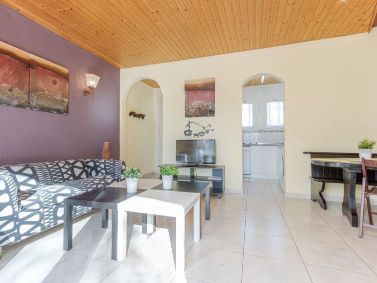 3-room house 55 m2 on 2 levels. Simple furnishings: living/dining room with dining table, satellite TV, digital TV and flat screen. Exit to the terrace. Kitchen (4 hot plates, dishwasher, toaster, kettle, microwave, freezer, grill, electric coffee machine). Sep. WC. No heating option.
