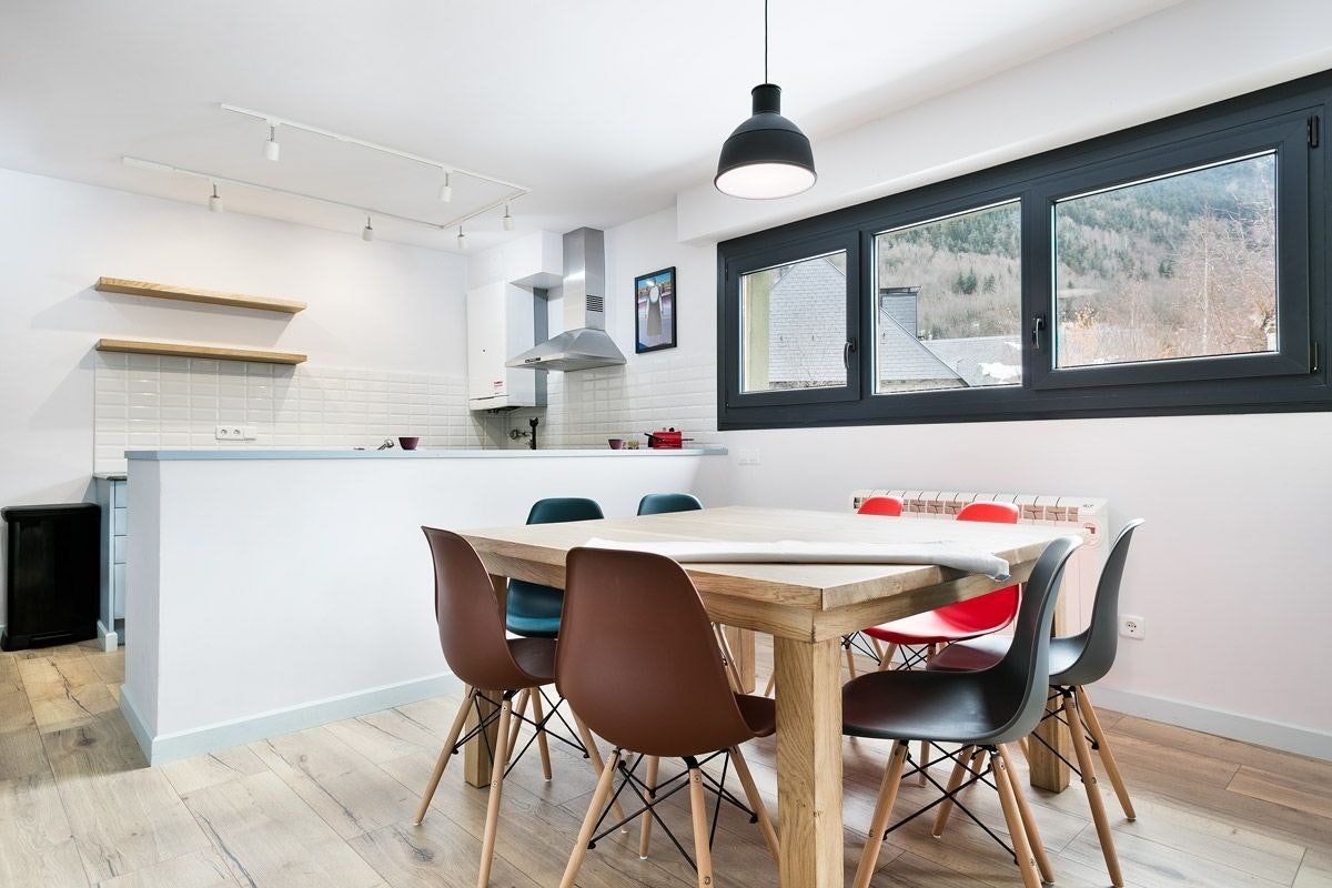 Nestled amidst the majestic scenery of the Aran Valley, this home sits in the peaceful town of Garós, best known for its preserved Aranese architecture. It's just a short drive from the ski resort of Baqueira-Beret and boasts easy access to the array of hiking trails and national parks dotted around the Catalan Pyrenees.