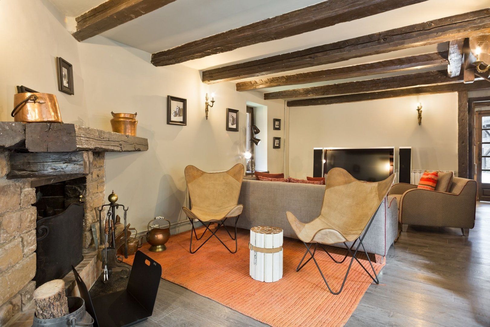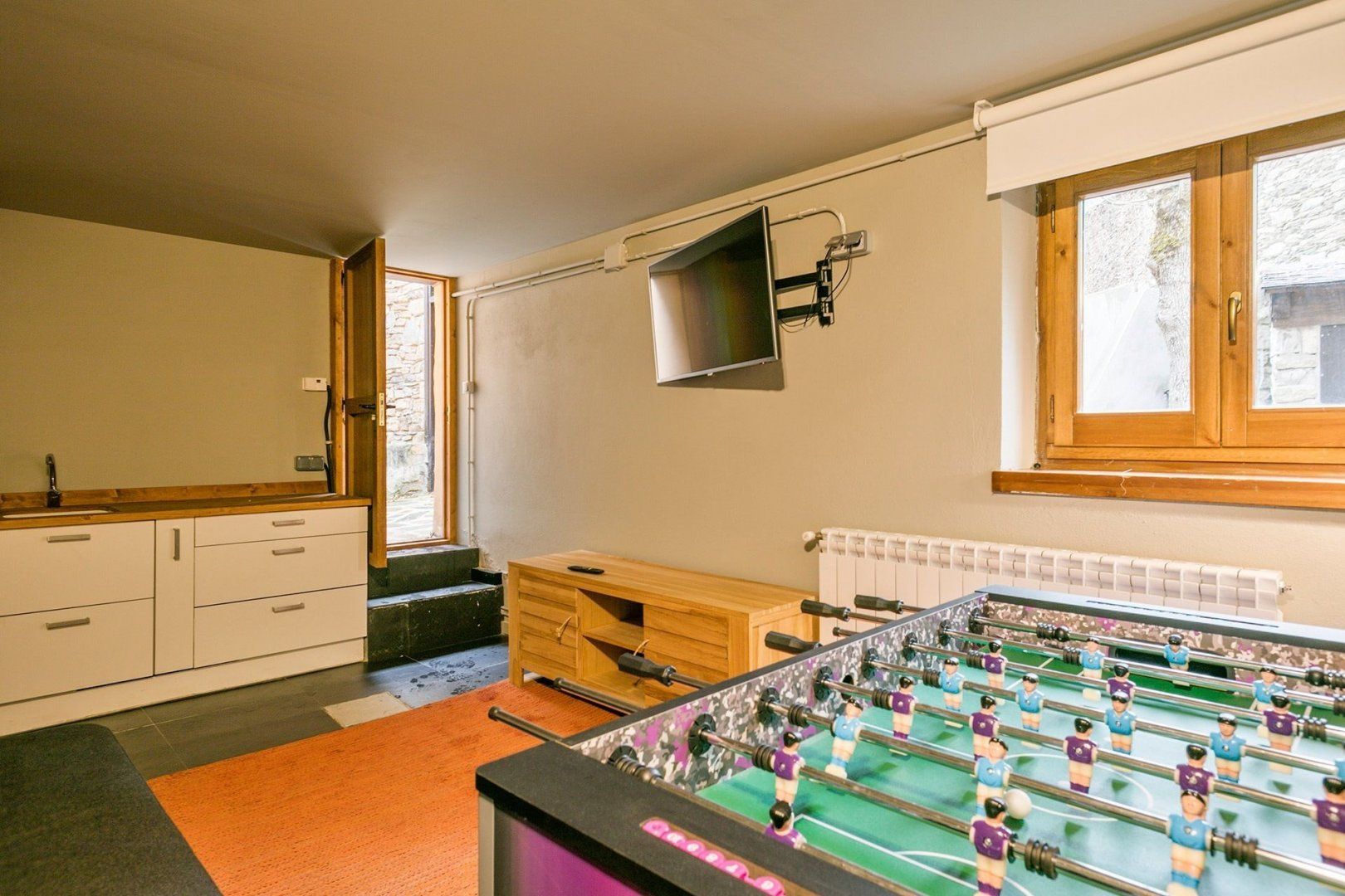Those indifferent to decor trends will instead be happy to note the large terrace on which it's possible to sit out and admire the picturesque surroundings, or perhaps the foosball room might take their fancy instead. This is certainly a home in which relaxation is easy to find, whether that's gathered around the fireplace or sinking back into the bathtub.