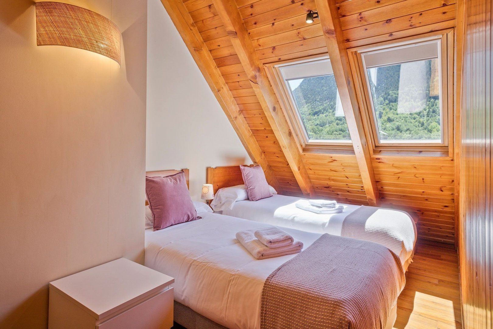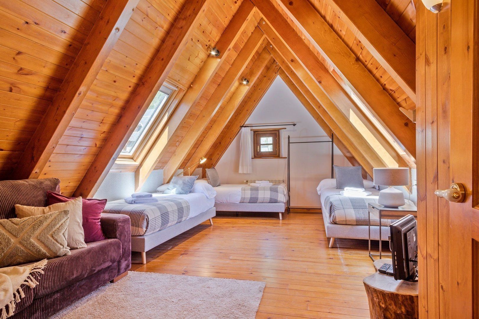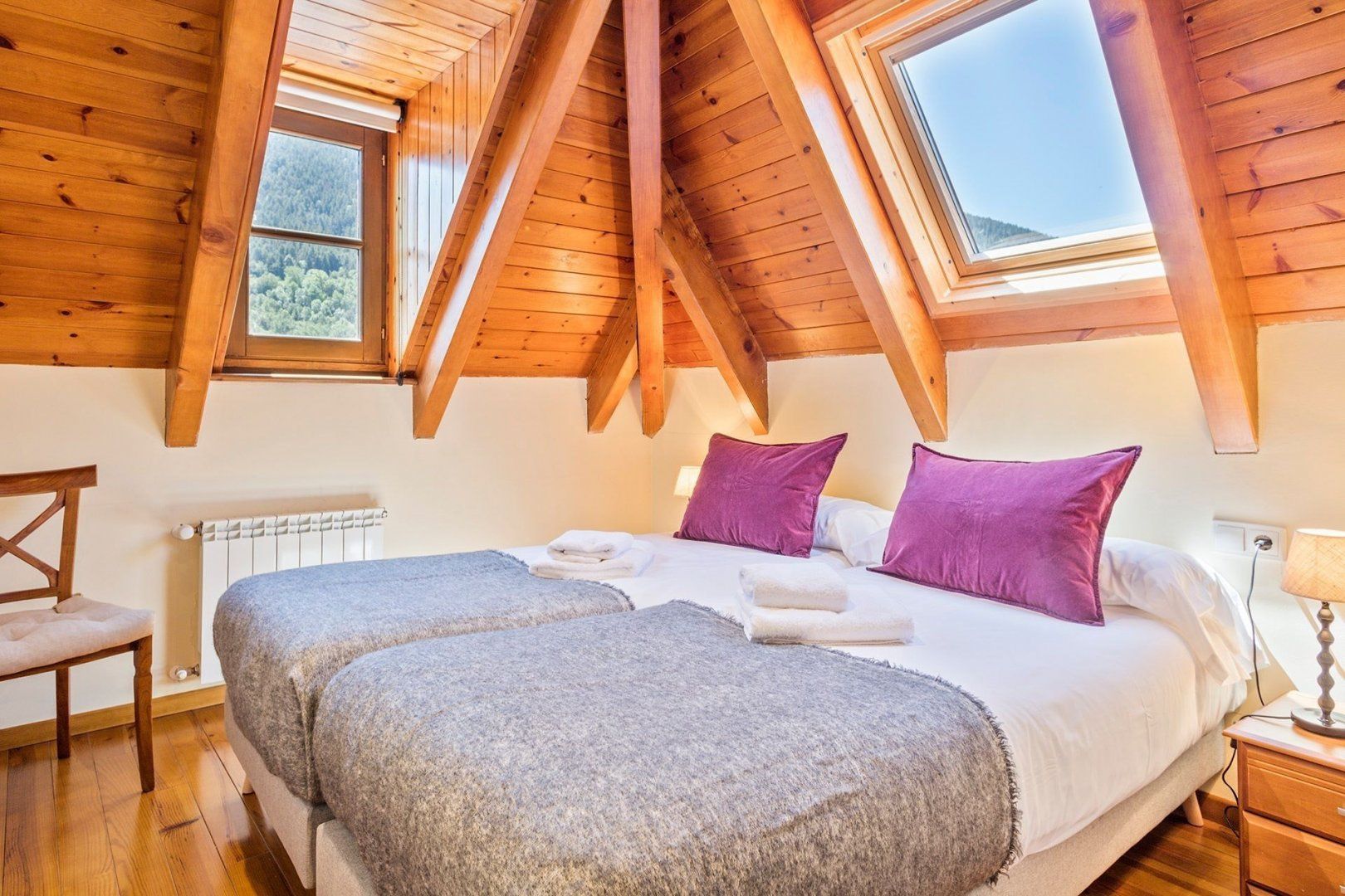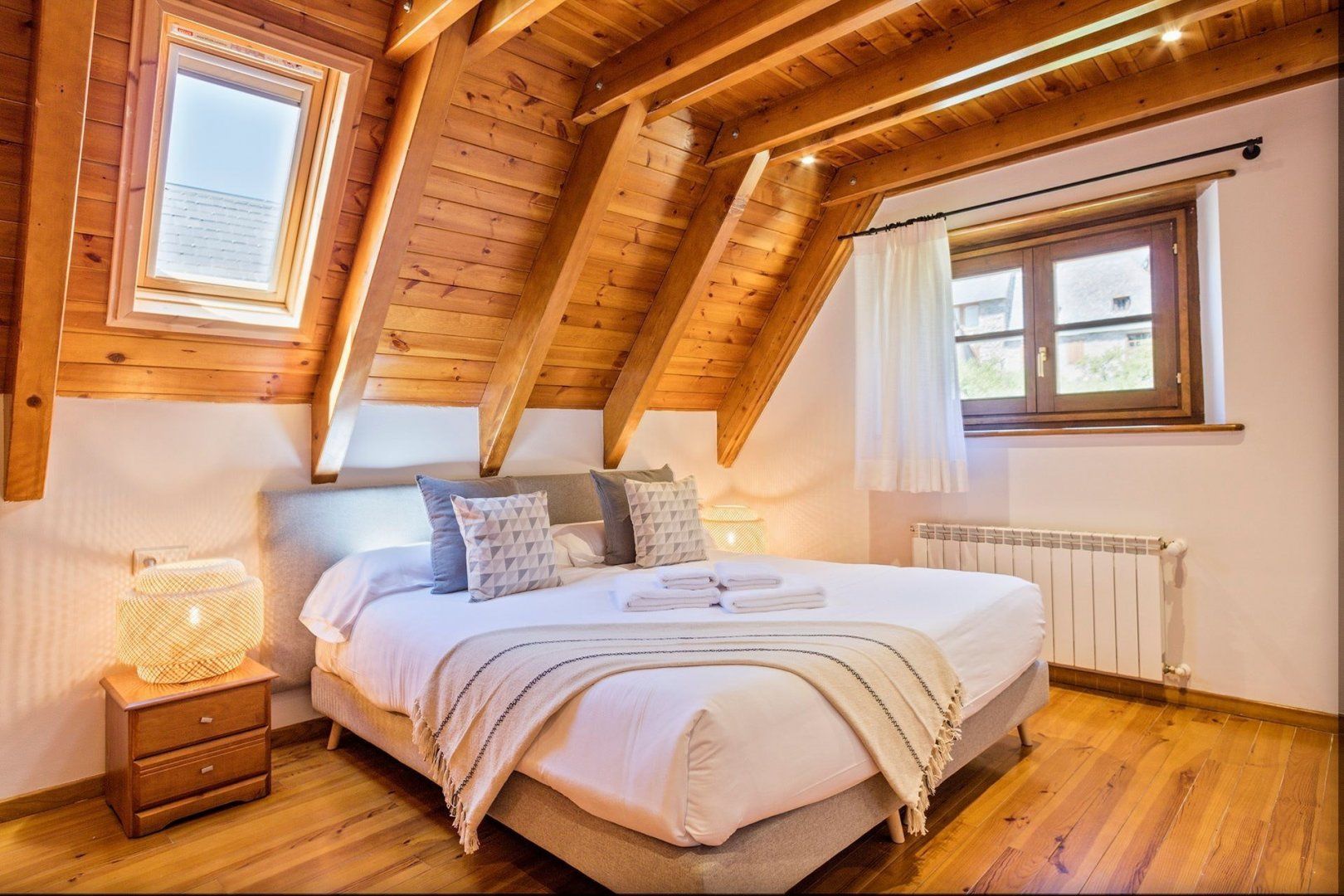 You will find this haven sitting in the Aran Valley. Drive through enchanting streets and fall in love with the stone-built houses and traditional wooden shutters – it's a wonderful walk to the Casa Rufus restaurant. Inside your home, there are vaulted ceilings and skylight windows that offer impressive views of the tree-covered mountaintop.