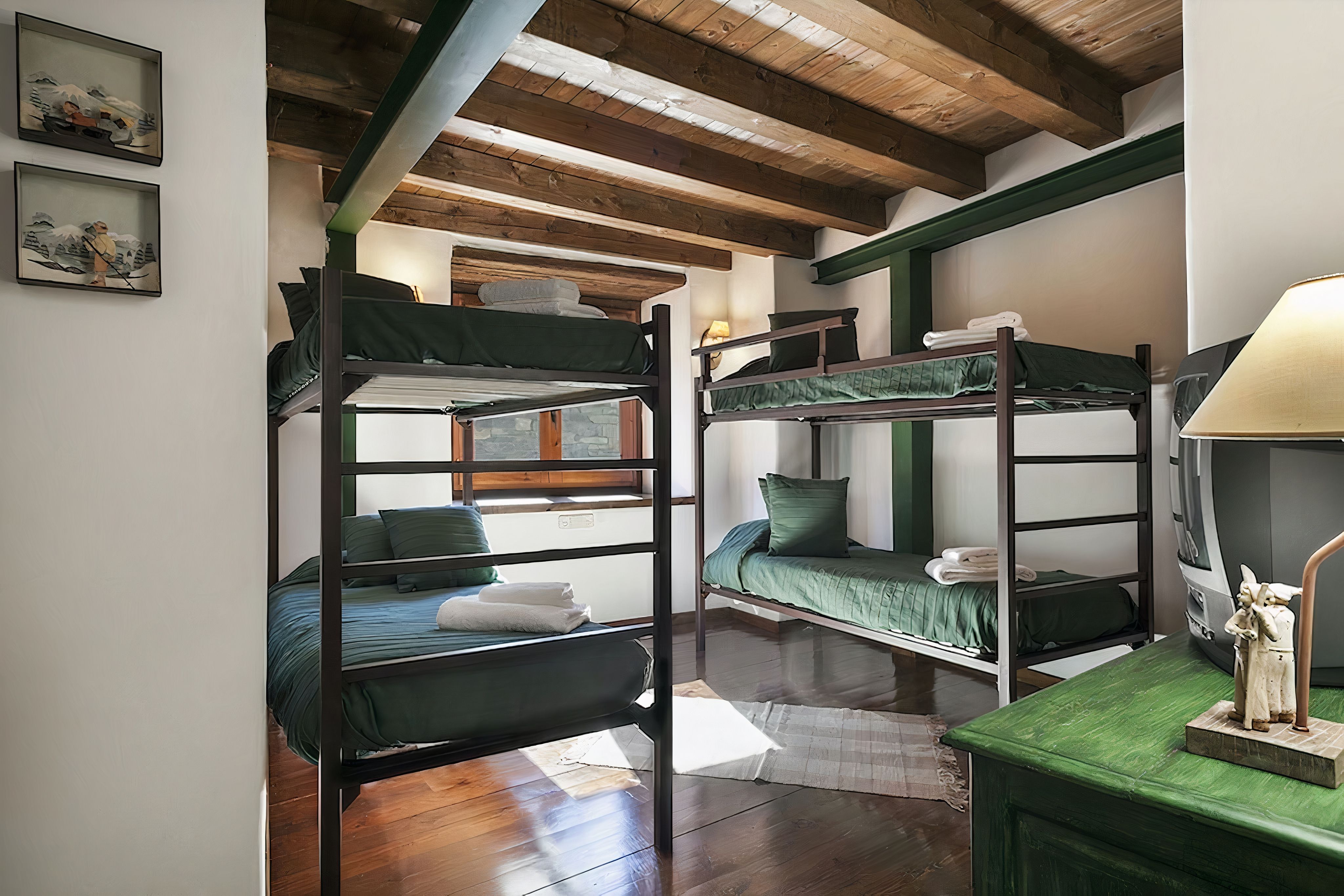 Home truths: *This home is spread over three floors and all the bedrooms are upstairs, so it may not be suitable for those with limited mobility *A private parking space is included, but this is in a nearby building and guests here have access to a parking space and ski locker at the foot of the slopes at Val de Ruda *One of the bedrooms has two sets of bunk beds so would be best suited to children sharing *Your host can provide a cot and high chair for infants – just ask *Though there isn't a dedicated desk here, the dining table doubles up as a laptop-friendly workspace *You'll have your own private entrance here