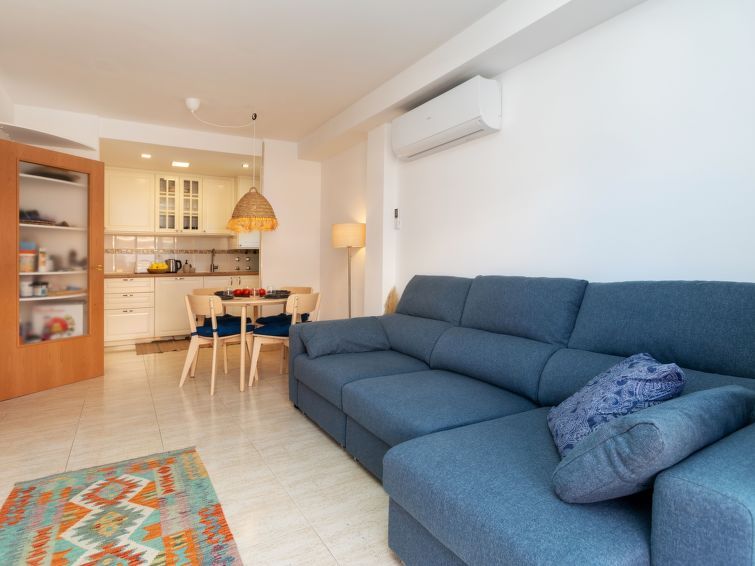 "Montserrada", 3-room apartment 60 m2 on 2nd floor. Comfortable furnishings: living/dining room with TV and flat screen. Exit to the terrace. 1 room with 1 french bed (160 cm, length 200 cm). 1 room with 1 french bed (160 cm, length 200 cm). Kitchen (oven, dishwasher, 4 ceramic glass hob hotplates, toaster, kettle, electric coffee machine).