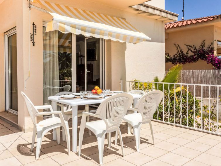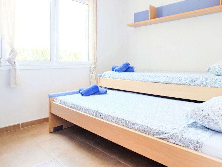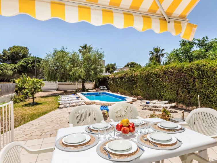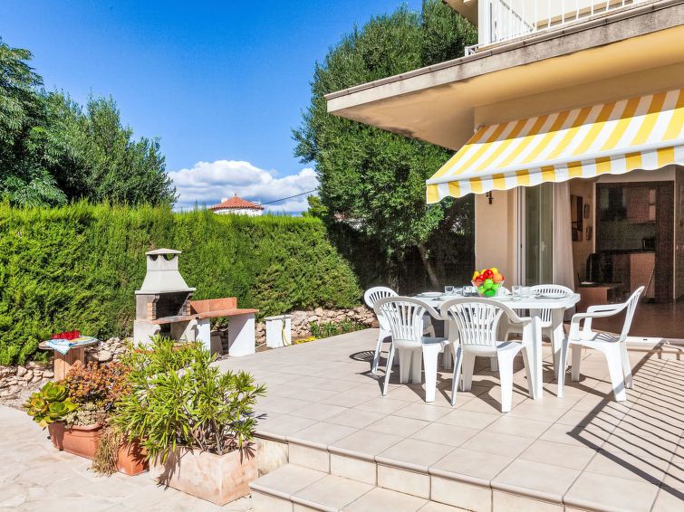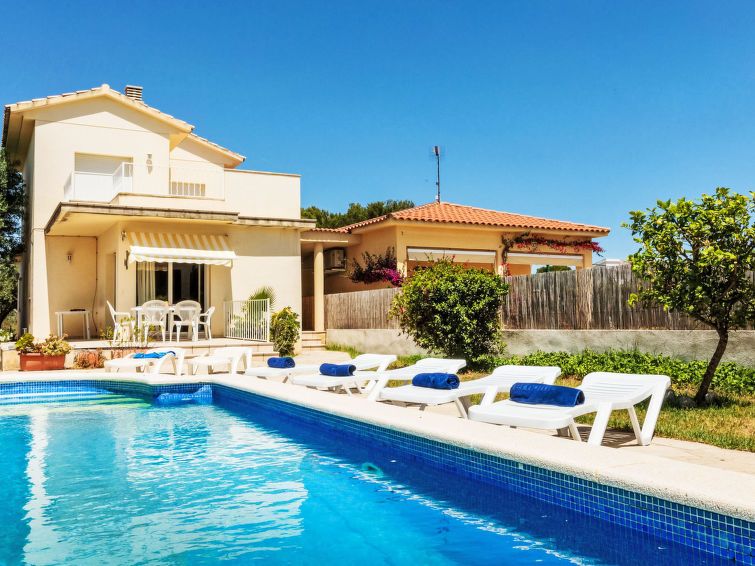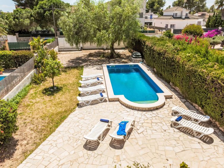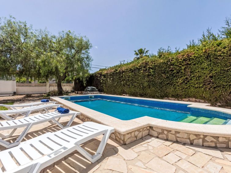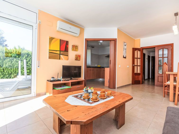 "Villa Pesquer", 5-room villa 150 m2 on 2 levels. Comfortable and cosy furnishings: living/dining room with dining table, digital TV and air conditioning. Exit to the patio. 1 room with 1 french bed (150 cm, length 190 cm), air conditioning. Kitchen (oven, 4 ceramic glass hob hotplates, toaster, kettle, microwave, electric coffee machine).