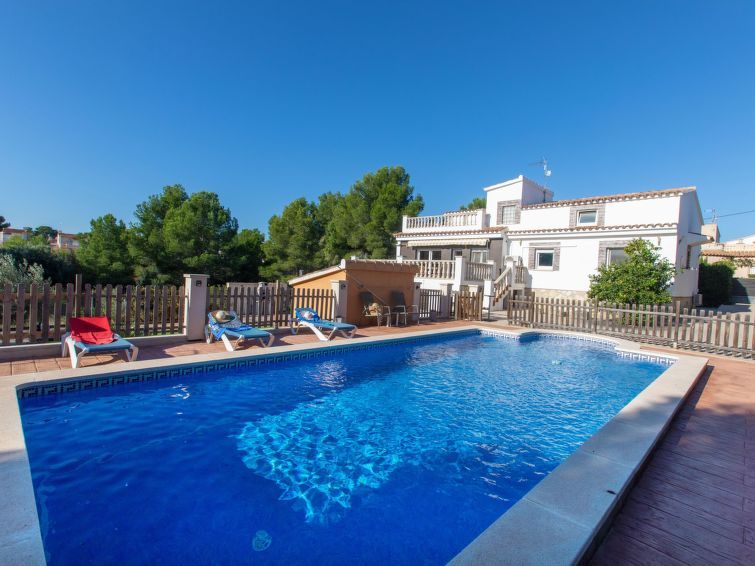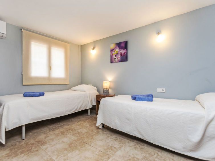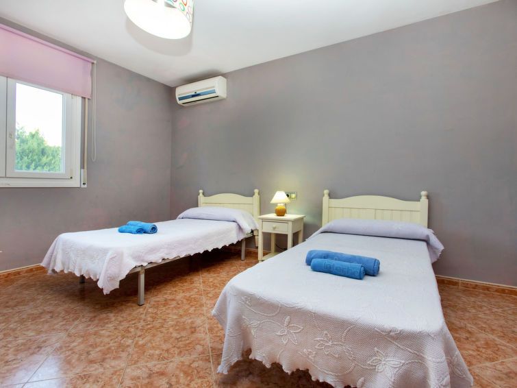"Villa Xelin", 8-room villa 150 m2 on 3 levels. Comfortable and cosy furnishings: dining room with dining table, digital TV, flat screen and air conditioning. Exit to the terrace. 2 rooms, each room with 2 beds (90 cm), air conditioning. 1 room with 1 french bed (180 cm), shower/WC and air conditioning.