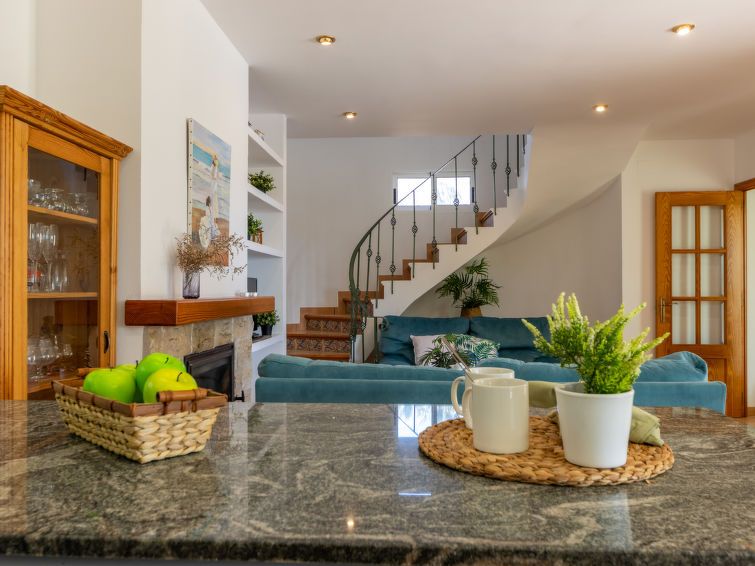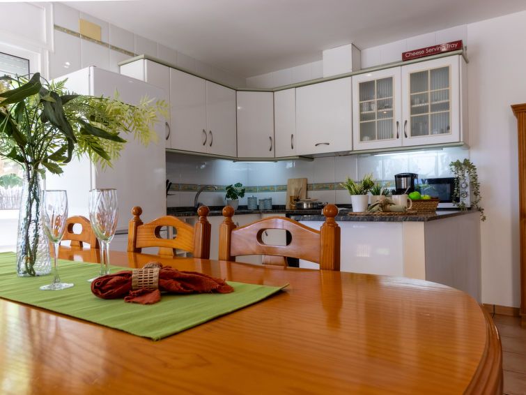 "Imma", 5-room villa 160 m2. Comfortable and beautiful furnishings: living/dining room with open-hearth fireplace (only for decoration), digital TV, international TV channels, air conditioning and forced-air heating. Exit to the patio, to the swimming pool. Open kitchen (oven, dishwasher, 4 ceramic glass hob hotplates, toaster, kettle, microwave, electric coffee machine) with bar.