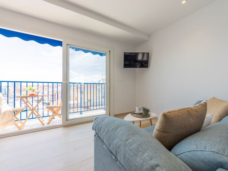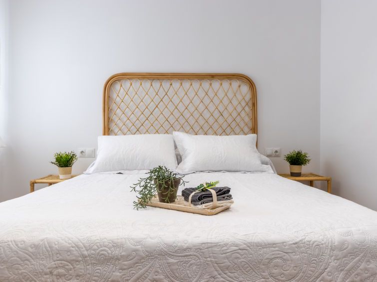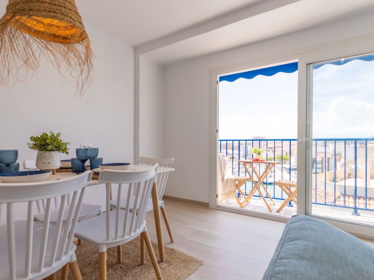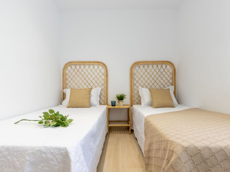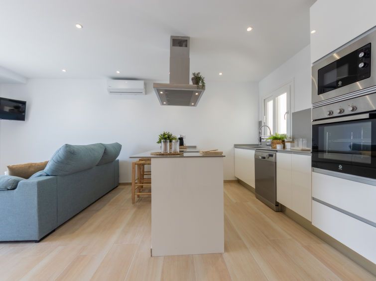 "Lluis", 3-room apartment 62 m2 on 5th floor. Spacious, comfortable and beautiful furnishings: living/dining room with digital TV, flat screen, air conditioning and forced-air heating. Exit to the balcony. 1 room with 1 french bed (150 cm, length 190 cm). 1 children's room with 2 beds (90 cm, length 190 cm).