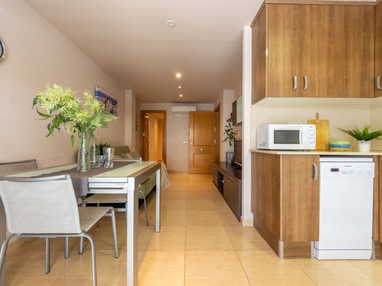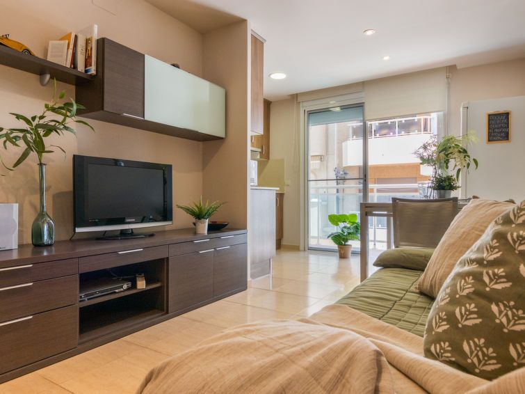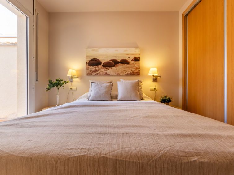 "Masnou", 3-room apartment 64 m2 on 1st floor. Comfortable and cosy furnishings: living/dining room with digital TV, air conditioning and forced-air heating. Exit to the balcony. 1 double bedroom with 1 french bed (135 cm, length 190 cm). Exit to the terrace. 1 room with 1 bed (90 cm, length 190 cm).
