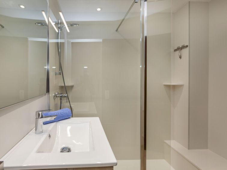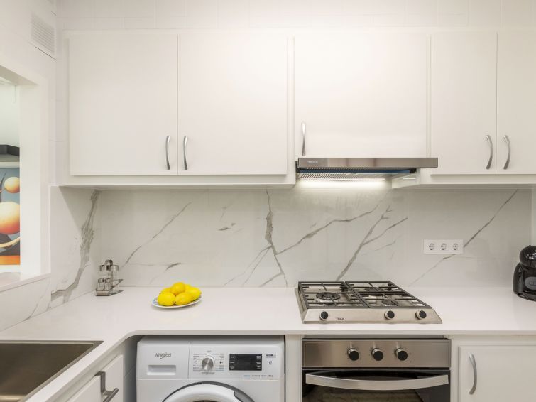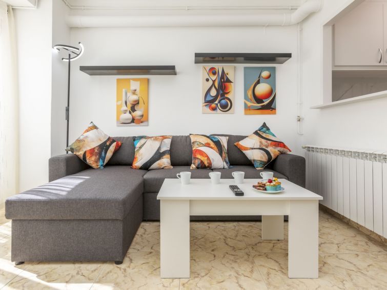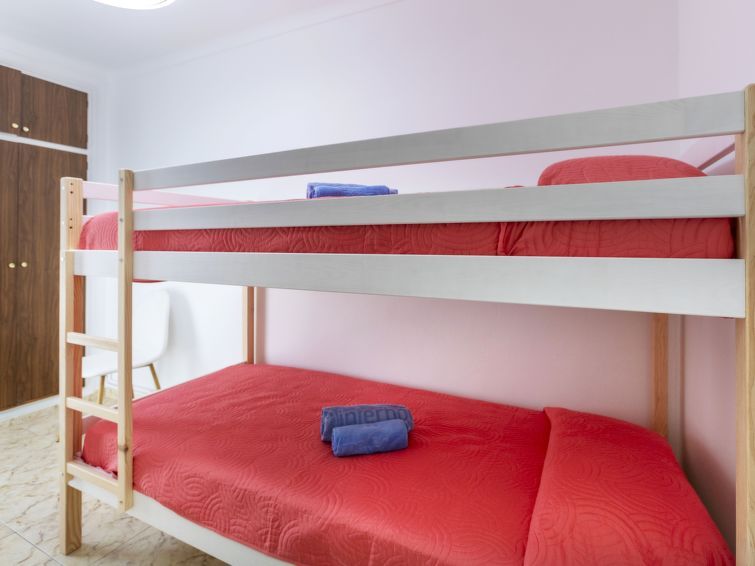 3-room apartment 44 m2 on 1st floor. Bright, renovated in 2025, comfortable and cosy furnishings: living/dining room with cable TV and fan. Small kitchen (3 hot plates, oven, toaster, kettle, microwave, electric coffee machine, Capsules for coffee machine (Dolce Gusto)). Upper floor: 1 room with 1 x 2 bunk beds (90 cm, length 190 cm), fan.