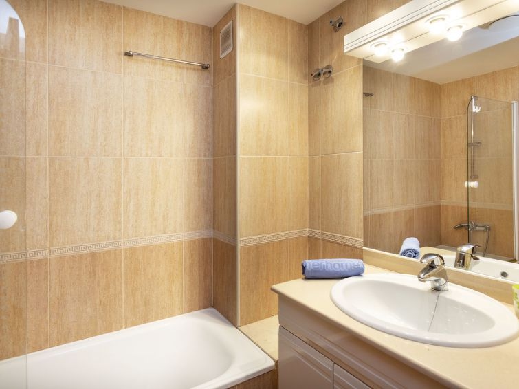 "Balco del Port I", 4-room apartment 70 m2, on the ground floor. Practical and comfortable furnishings: entrance hall. Living/dining room with digital TV and air conditioning. Exit to the terrace. 2 rooms, each room with 1 bed (90 cm, length 2 cm). 1 room with 1 french bed (135 cm, length 190 cm), bath/bidet/WC.