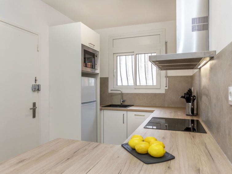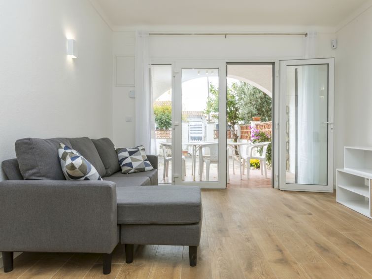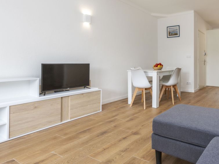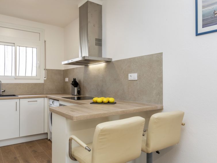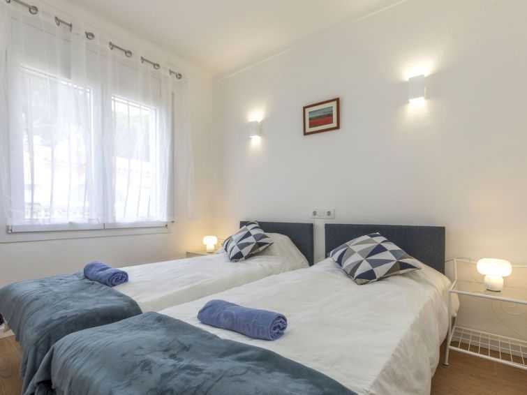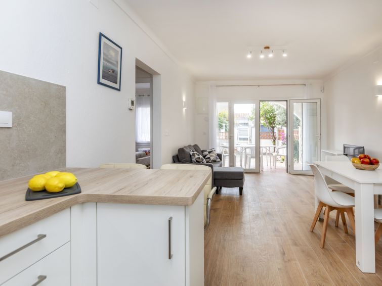 3-room semi-detached house 50 m2. Modern and cosy furnishings: living/dining room with digital TV. Exit to the patio. 1 room with 2 beds (90 cm, length 200 cm). 1 room with 1 french bed (150 cm, length 190 cm). Open kitchen (oven, dishwasher, 3 ceramic glass hob hotplates, toaster, kettle, microwave, freezer, electric coffee machine) with small bar.