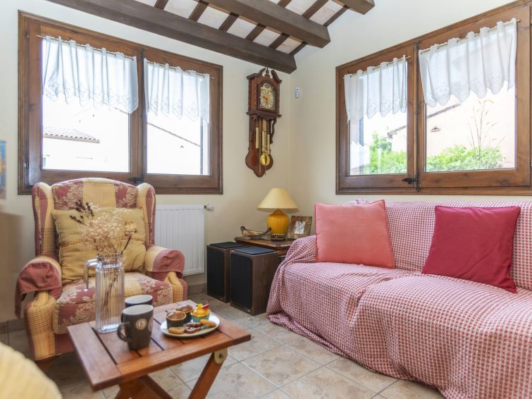 "La Falguera", 4-room house 110 m2. Comfortable and cosy furnishings: living/dining room with satellite TV and air conditioning. Exit to the patio. 2 rooms, each room with 1 french bed (140 cm, length 200 cm). 1 room with 2 beds (90 cm, length 200 cm). Kitchen (4 hot plates, oven, dishwasher, toaster, kettle, microwave, electric coffee machine).