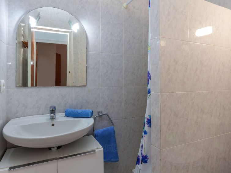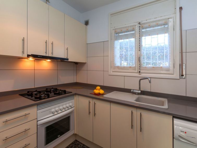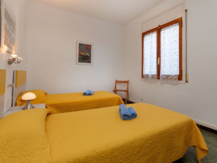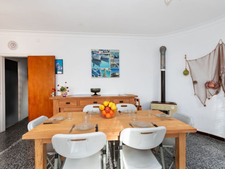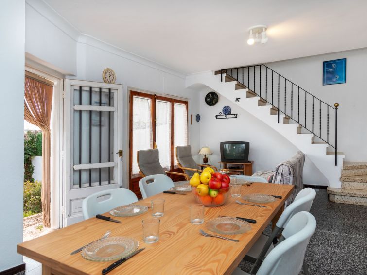 5-room house on 2 levels. Practical and rustic furnishings: living/dining room with satellite TV. Exit to the patio. 1 room with 2 beds (90 cm, length 190 cm). Kitchen (4 hot plates, oven, microwave, electric coffee machine). Shower/WC. No heating option. Upper floor: walk-through room.