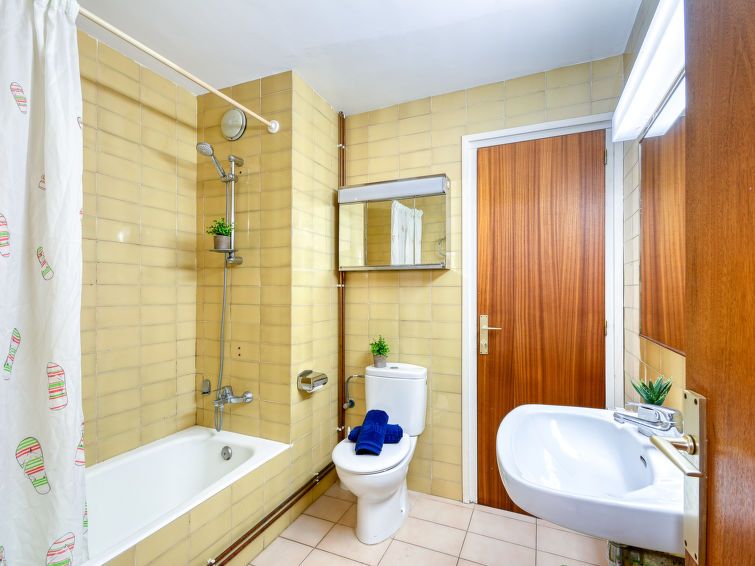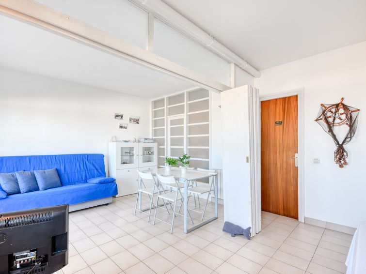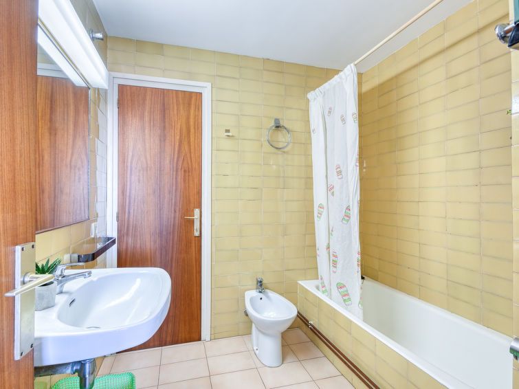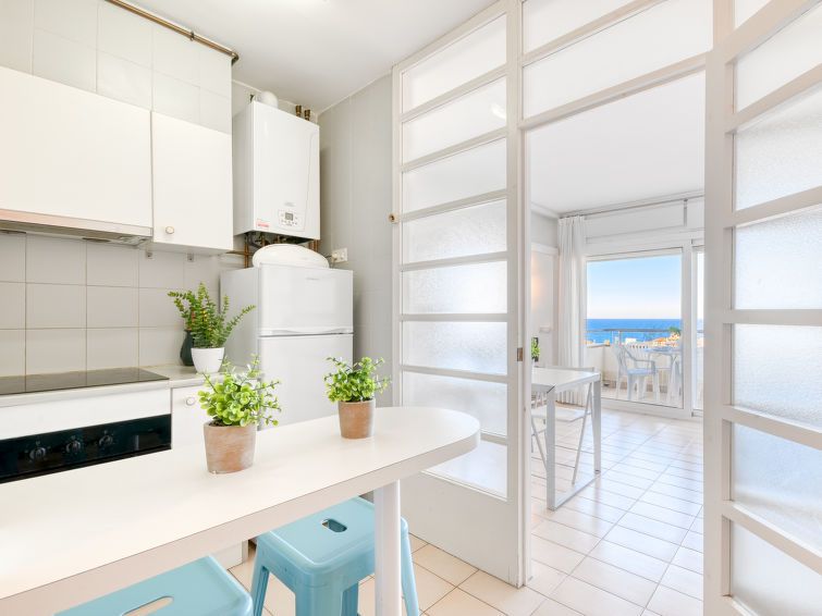 3-room apartment 55 m2. Bright, partly renovated, practical and beautiful furnishings: living/dining room with dining table and digital TV. Exit to the terrace. 1 room with 1 french bed (140 cm, length 190 cm), fan. 1 open room with 2 beds (90 cm, length 190 cm). Small, open kitchen (3 ceramic glass hob hotplates, toaster, kettle, microwave, freezer, electric coffee machine).
