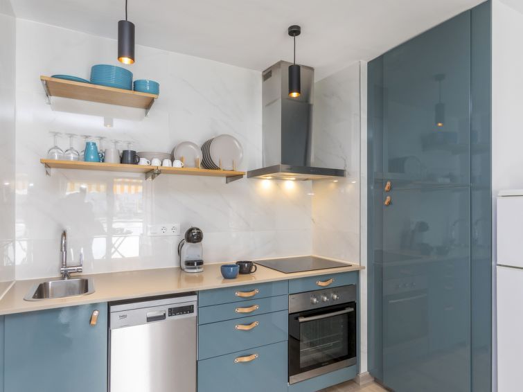 2-room apartment 45 m2 on 3rd floor. Comfortable and modern furnishings: living/dining room with digital TV, international TV channels, air conditioning, fan and forced-air heating. Exit to the balcony. 1 room with 1 french bed (150 cm, length 190 cm), electric heating. Open kitchen (oven, dishwasher, 3 ceramic glass hob hotplates, toaster, kettle, microwave, freezer, electric coffee machine).