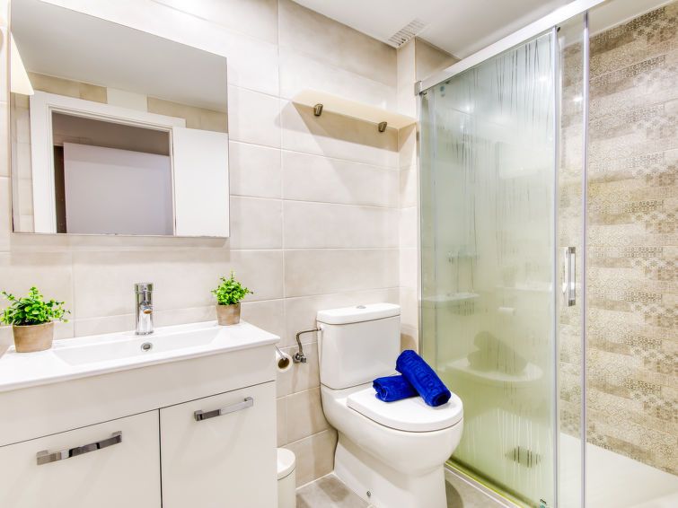 3-room apartment 65 m2 on 1st floor. Spacious and bright, very comfortable and beautiful furnishings: living/dining room with dining table and fan. Exit to the terrace. 1 room with 1 french bed (150 cm, length 190 cm), fan. 1 room with 1 french bed (160 cm, length 190 cm), fan. Open kitchen (3 hot plates, oven, dishwasher, toaster, kettle, microwave, freezer, electric coffee machine).