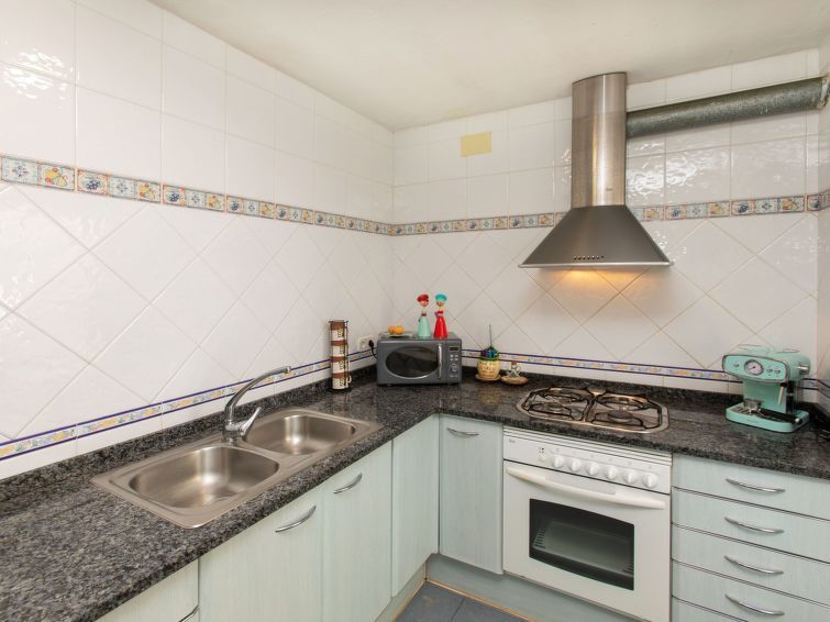 4-room terraced house 80 m2 on 2 levels. Practical furnishings: living/dining room with open-hearth fireplace (only for decoration), dining table, digital TV and flat screen. Exit to the patio. Kitchen (4 hot plates, oven, toaster, kettle, microwave, freezer, electric coffee machine).