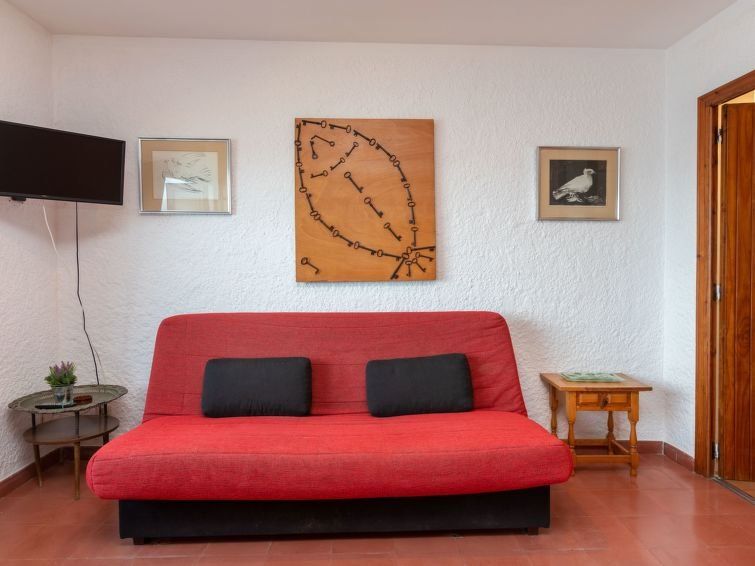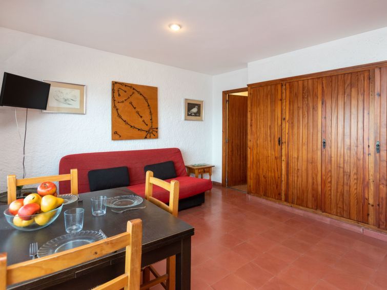2-room apartment 29 m2 on 2nd floor. Practical and comfortable furnishings: living/dining room with cable TV (flat screen). Exit to the balcony. 1 room with 1 french bed (135 cm, length 190 cm). Small kitchen (oven, 3 ceramic glass hob hotplates). Shower/WC. Boiler (50 litres). No heating option.
