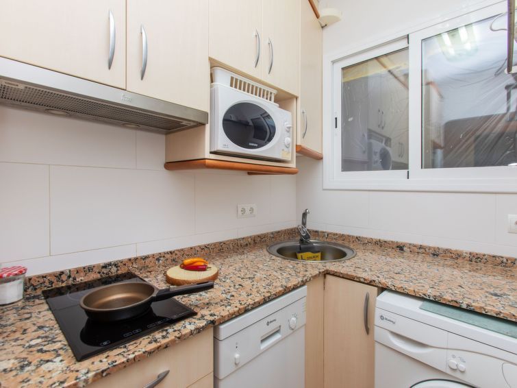 3-room apartment 66 m2 on 1st floor. Bright, comfortable and cosy furnishings: living/dining room with dining table, digital TV and flat screen. Exit to the veranda. 1 room with 1 french bed (150 cm, length 190 cm). 1 room with 2 beds (80 cm, length 180 cm). Kitchen (dishwasher, 2 ceramic glass hob hotplates, toaster, kettle, microwave, freezer, electric coffee machine).