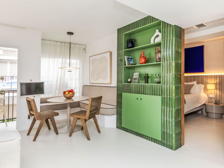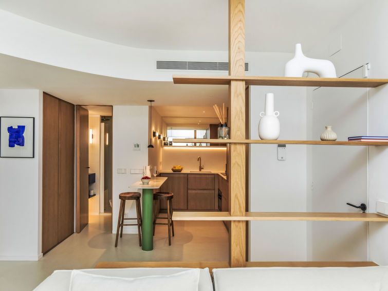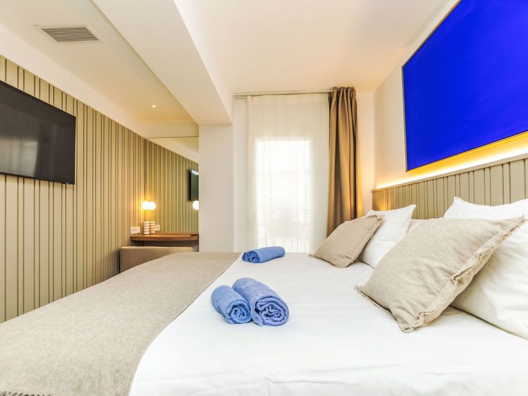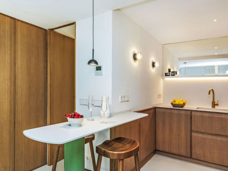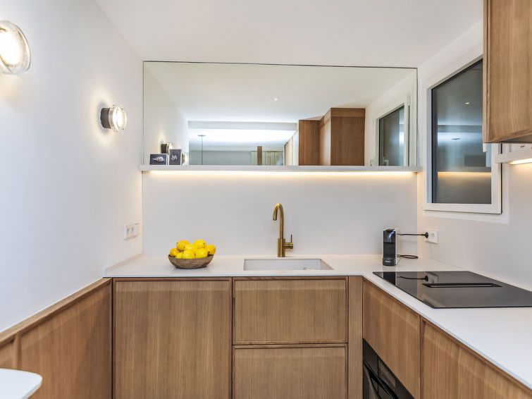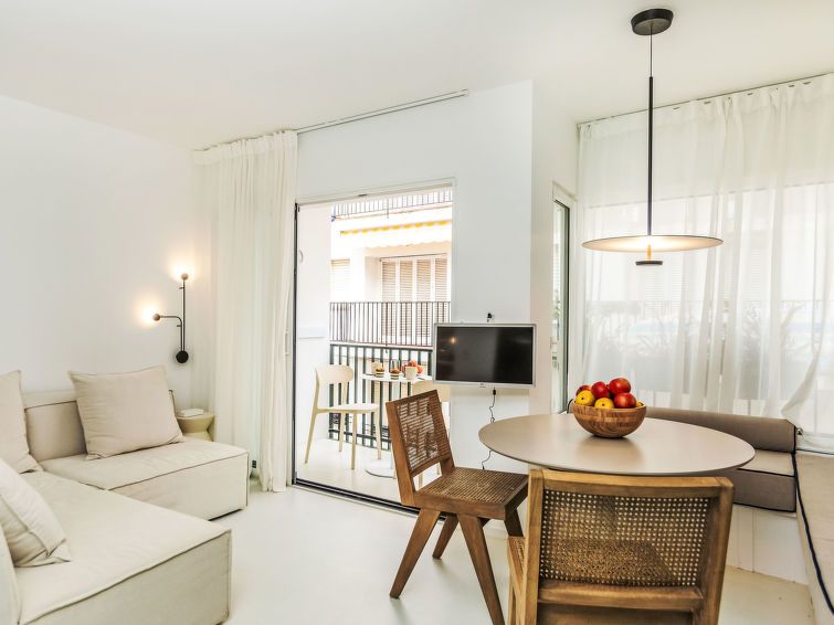 "Llafranc Beach", 3-room apartment 55 m2 on 1st floor. Comfortable and modern furnishings: living/dining room with digital TV. Exit to the balcony. 1 room with 1 french bed (180 cm, length 200 cm). 1 room with 2 beds (90 cm, length 200 cm). Small, open kitchen (oven, dishwasher, 4 induction hot plates, toaster, kettle, microwave, freezer, electric coffee machine) with bar.