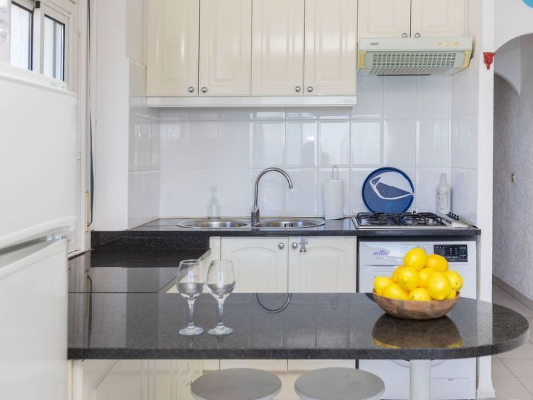 "Aloes", 2-room apartment 40 m2. Comfortable and cosy furnishings: living/dining room with dining table and TV. Exit to the balcony. 1 room with 1 french bed (140 cm, length 190 cm). Interconnecting room with 1 x 2 bunk beds (90 cm, length 190 cm). Open kitchen (3 hot plates, microwave, freezer, electric coffee machine) with bar.