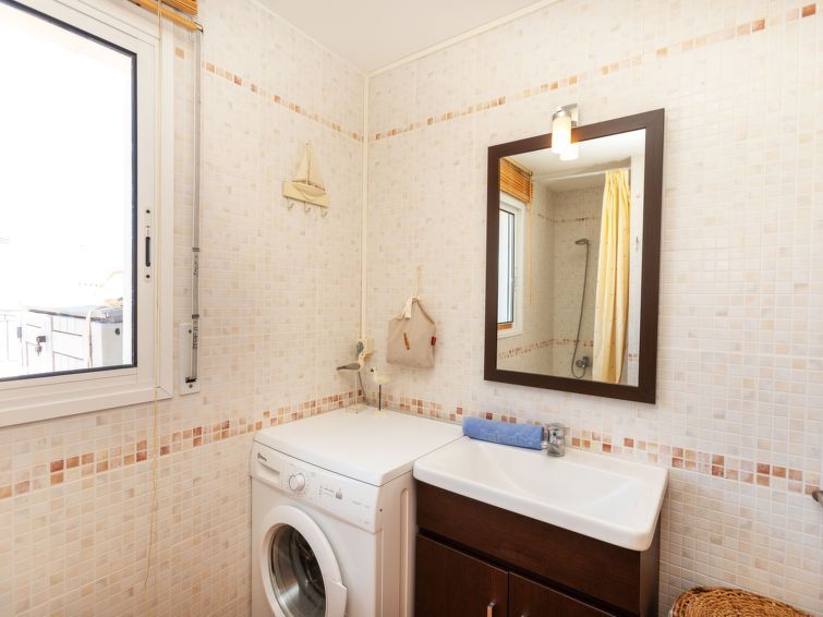 3-room apartment 60 m2 on 2nd floor. Spacious and bright, comfortable and modern furnishings: living/dining room with dining table and satellite TV. Exit to the terrace. 1 room with 1 french bed (160 cm, length 190 cm). 1 room with 1 x 2 bunk beds. Open kitchen (oven, 4 ceramic glass hob hotplates, toaster, kettle, microwave, freezer, electric coffee machine).