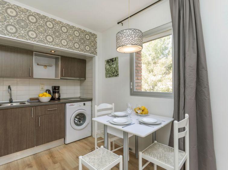 "Cosy Lloret", 2-room apartment 30 m2. Simple and cosy furnishings: 1 double bedroom with 1 french bed (135 cm, length 190 cm). Exit to the balcony. Open kitchen (2 hot plates, toaster, kettle, microwave, freezer) with 1 sofabed (135 cm, length 190 cm), dining table and digital TV.